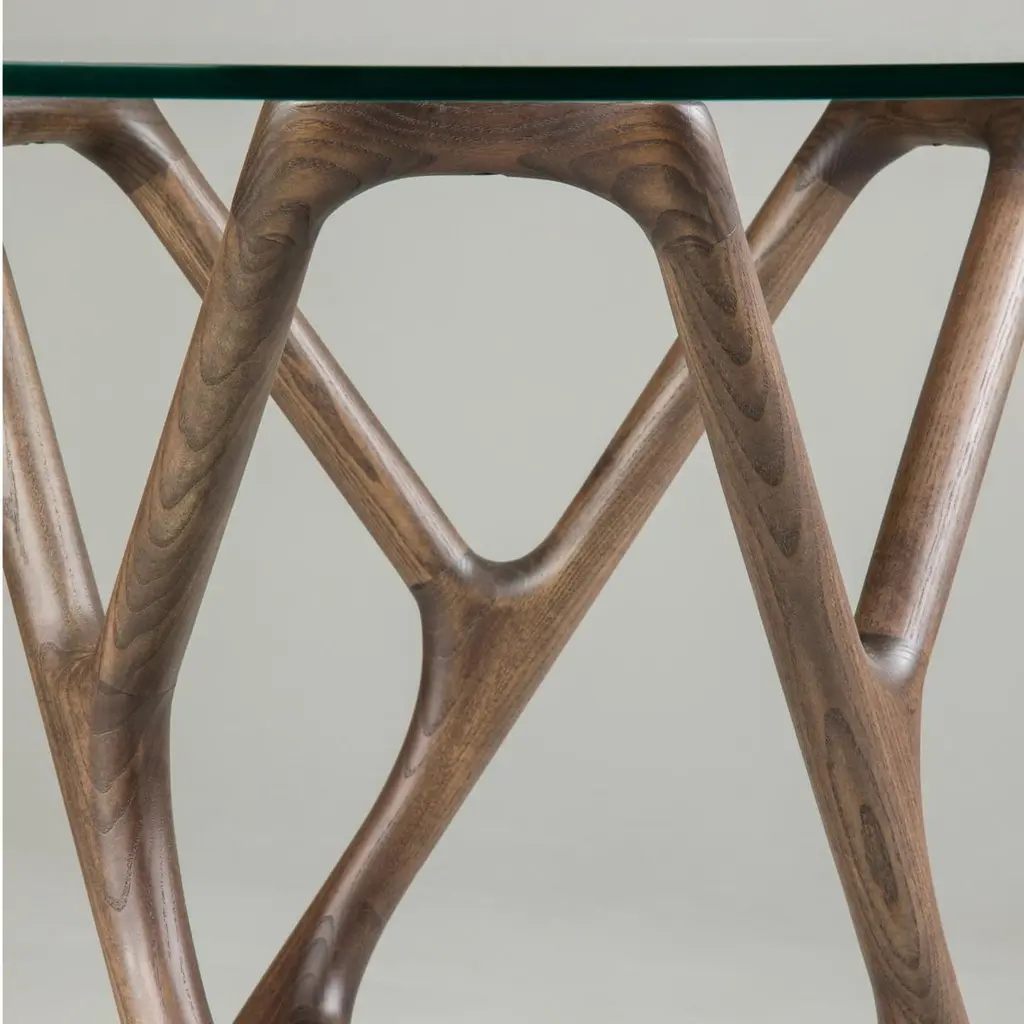 Joyce Contemporary Dining Round Table In Turned Ashwood And Glass Top