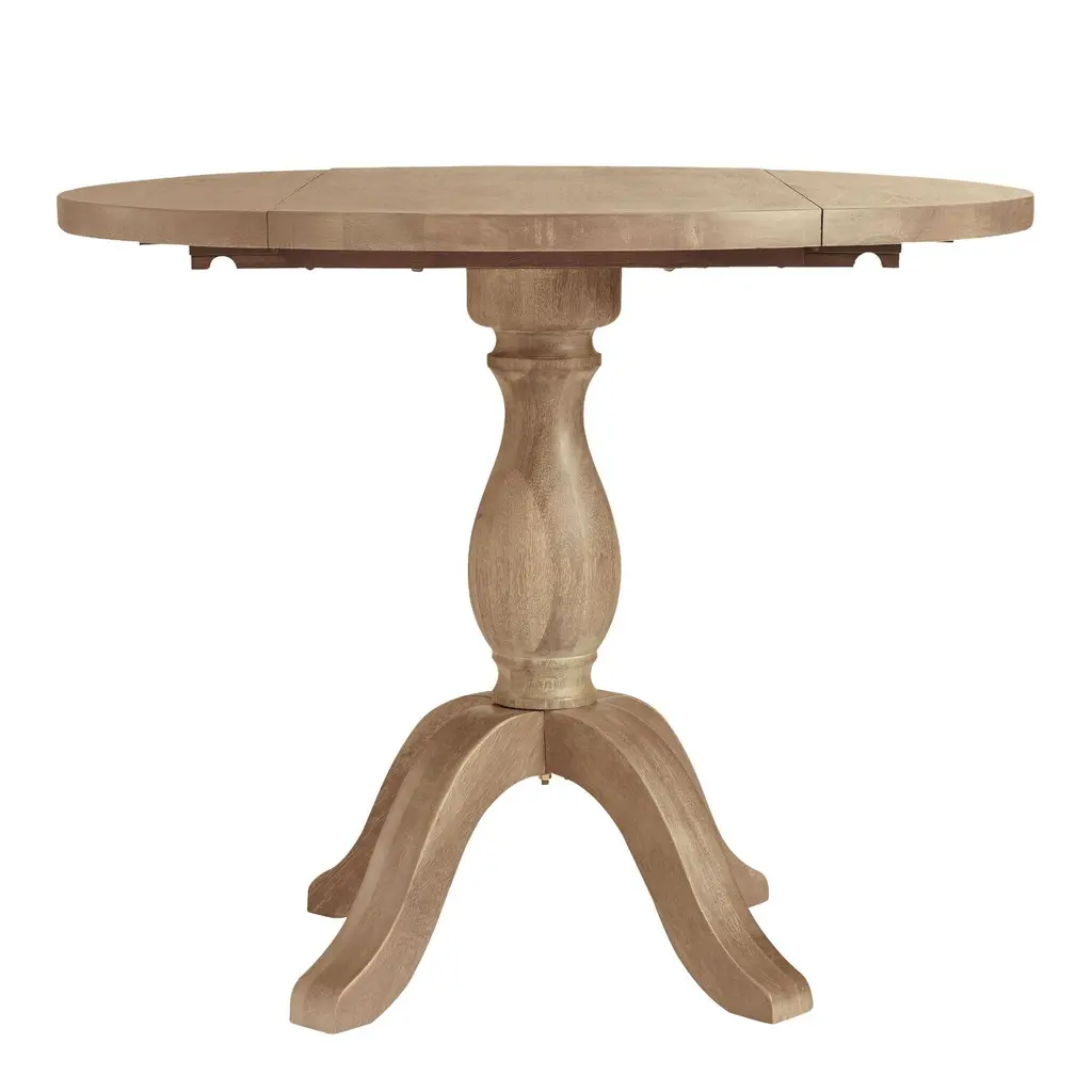 Jozy Round Weathered Gray Wood Drop Leaf Dining Table