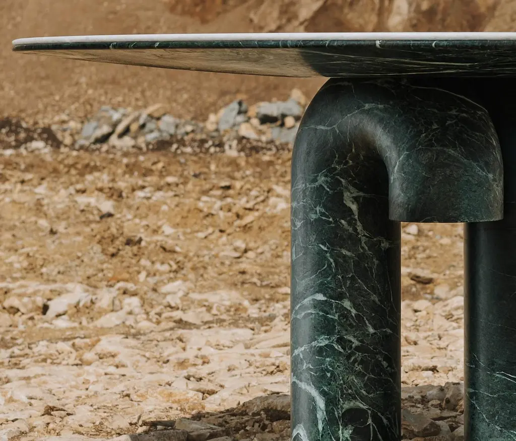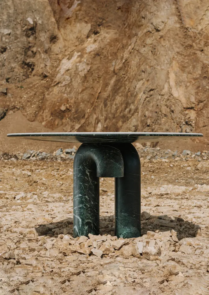 Juni dining table by Marmi SerafiniDesigned by Piotr DabrowaDimensions: D 135 x H 73 cmMaterials: Verde Alpi marble, Bianco Crystal marble.Available in other marbles. Prices may vary according to the marble selection.Marmi Serafini is located in a small city named Chiampo, internationally well known for its marble production.It's origins stem from Mr. Bruno Fortunato's passion for marble which was then passed on to his two sons, Alessandro ad Luca, who eventually took over.Marmi Serafini has, with the passing of time, transformed into one of the most innovative marble factories, producing extremely design-driven products and objects.