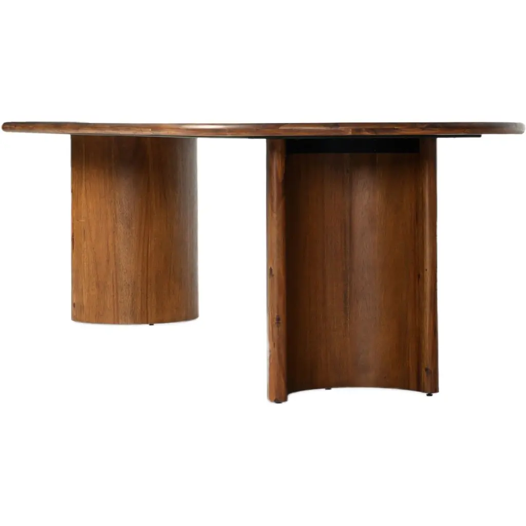 A study in shape, the Justice Dining Table features crescent-shaped legs and a sprawling oval tabletop, offering a grand, organic presence to any dining room. This table's design is a testament to the beauty of natural forms, making it a striking centerpiece for gatherings and meals.