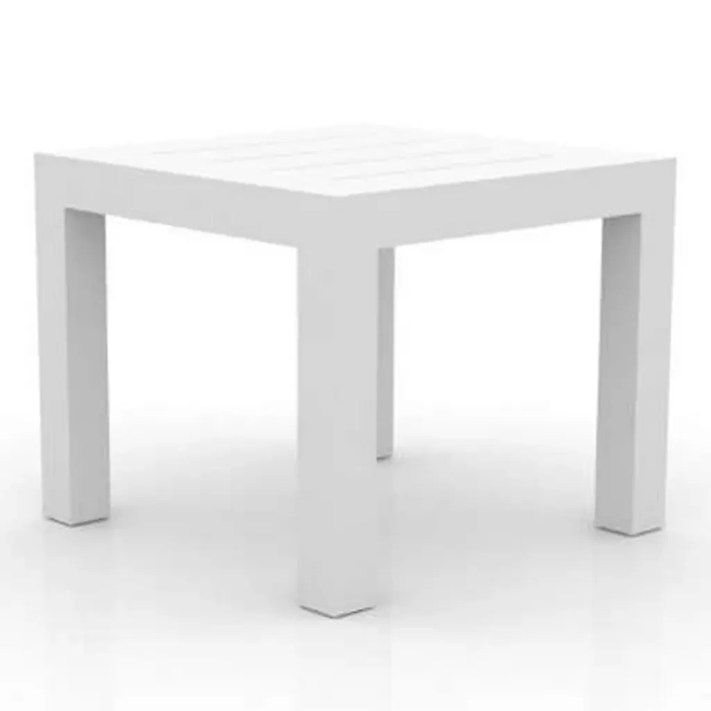 Showcasing artistic contrast, bold rectilinear shapes make up the minimalistic design of this small-sized Jut Table 90. Clean, sharp lines and angles give the piece a contemporary charm, making indoor and outdoor dining more enjoyable. The dining table's impact-resistant composition provides weather resistance capable of surviving extreme atmospheric conditions. While contributing to style, long perforations across the tabletop facilitate the spontaneous seepage of rainwater to keep the furniture dry. At 35.5-inches long and wide, the table can comfortably accommodates two persons. The Jut Table 90 is available in a range of bright colors and two finishes.