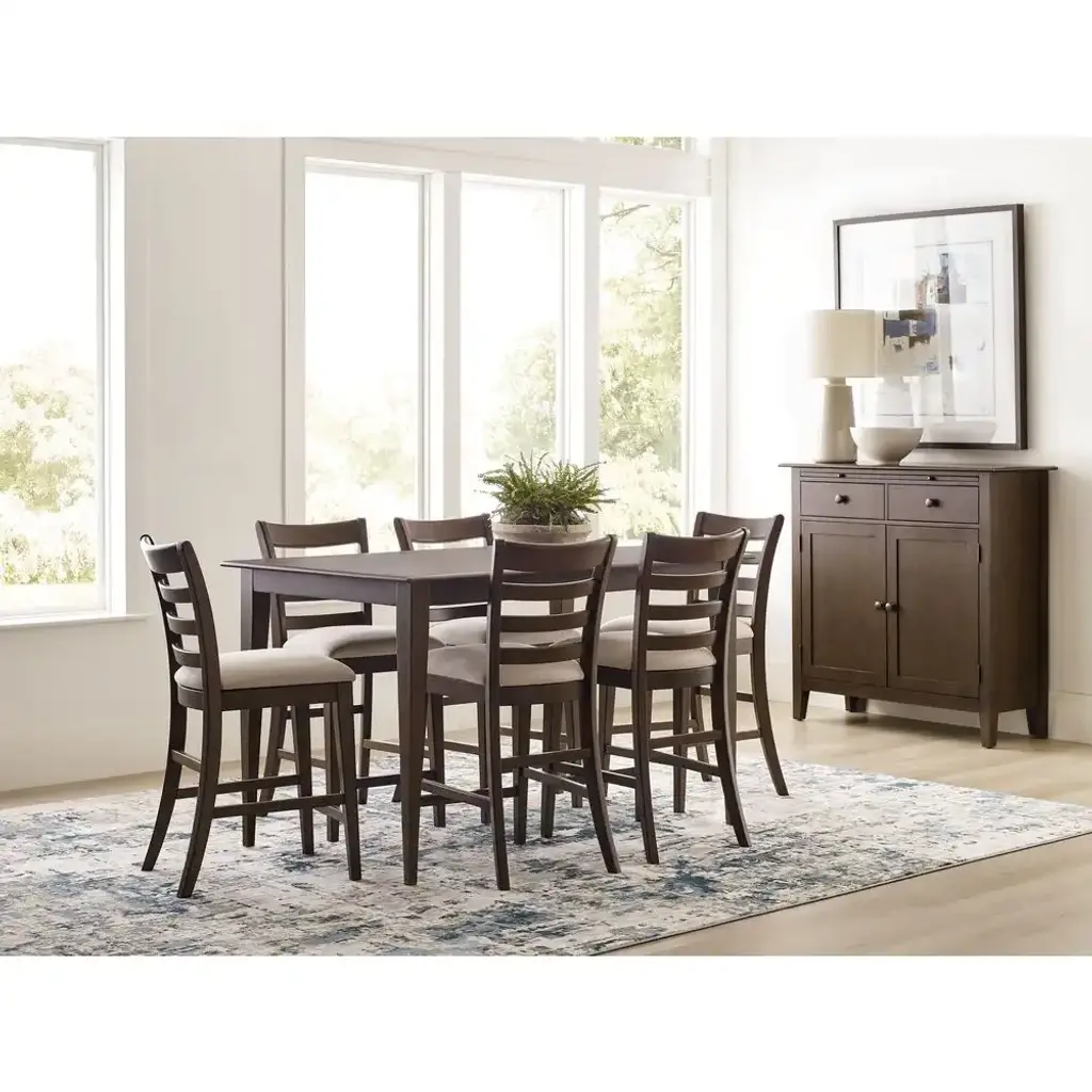 Introducing the Kafe 60" Counter Height Rectangular Dining Table, a perfect blend of style and functionality for your dining area. Available in Latte and Mocha finishes, this table effortlessly enhances any space with its timeless design. With a spacious 60" rectangular top, it comfortably accommodates up to 6 people, making it perfect for family meals or gatherings with friends. The counter height design adds a contemporary touch, while the sturdy construction ensures durability for years to come. Whether hosting a dinner party or enjoying everyday meals, the Kafe 60" Counter Height Rectangular Dining Table brings both elegance and practicality to your home.