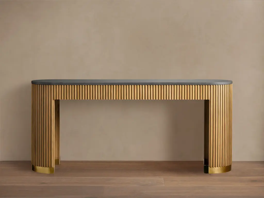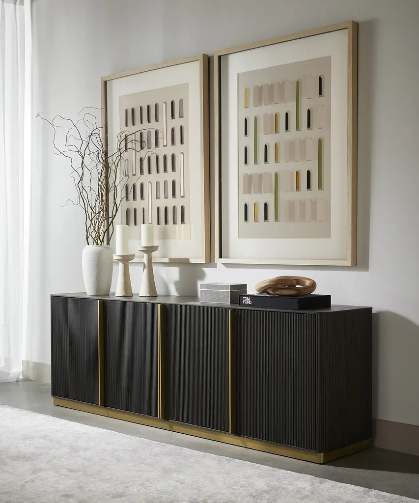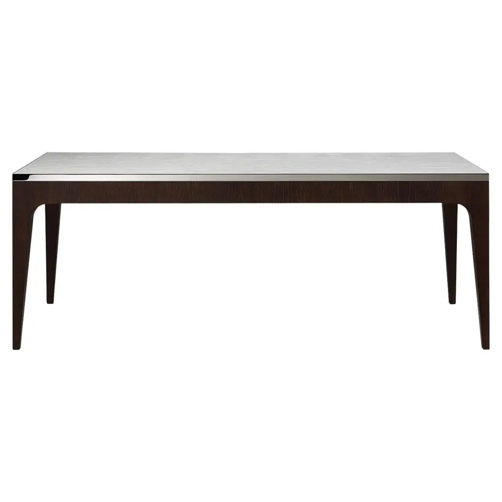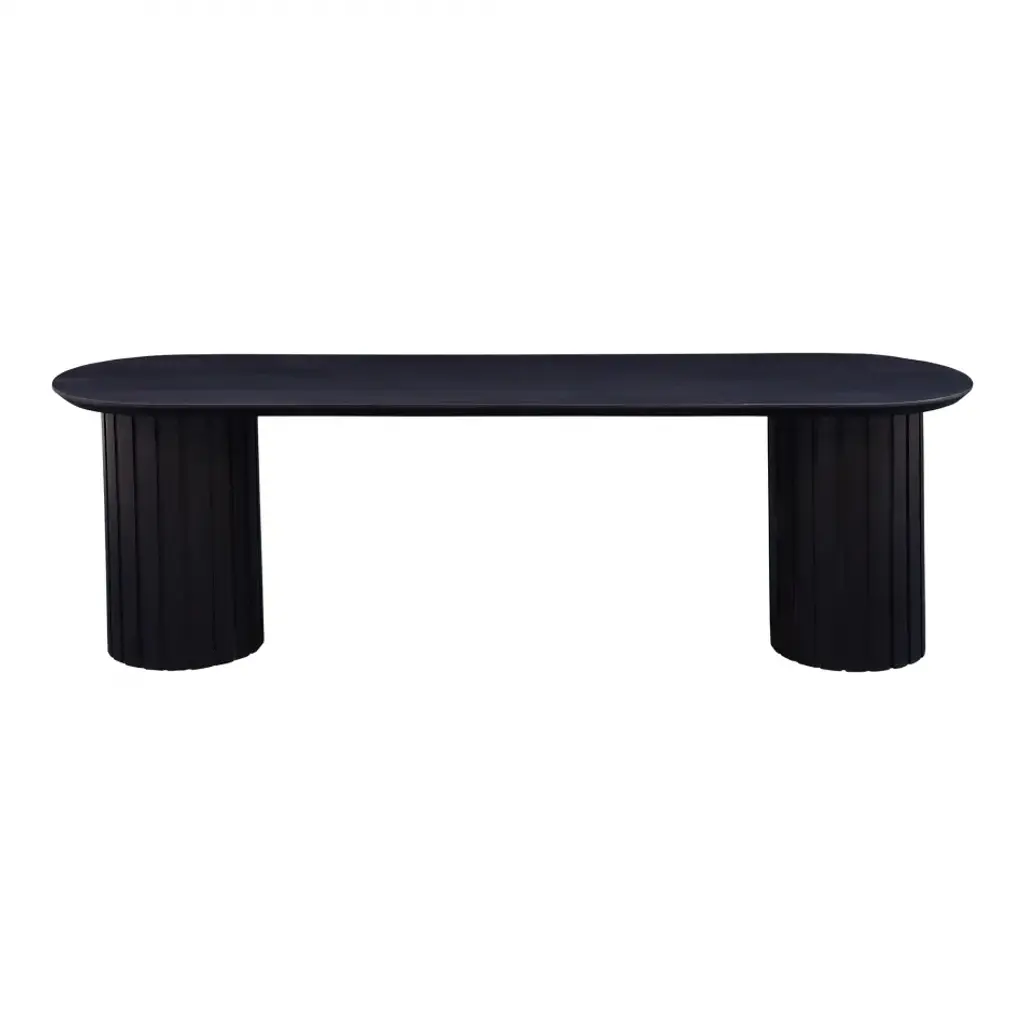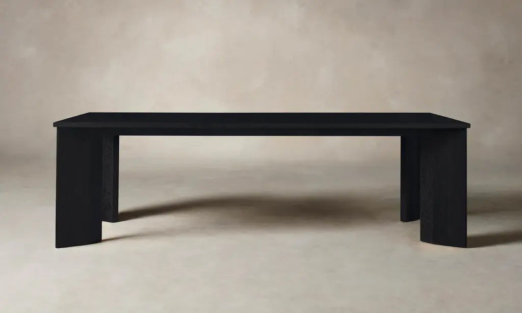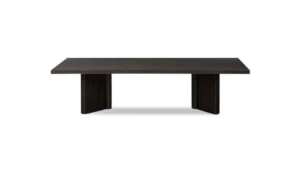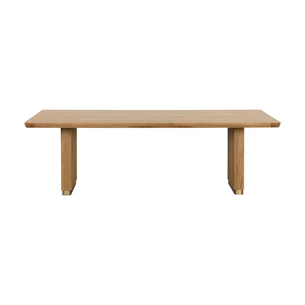 Elevate your dining experience with the Kalla Rectangular Dining Table from Sunpan. Combining form and function for the ultimate centerpiece, it features a charcoal grey oak veneer top with a chamfered edge, complemented by a solid oak wood base with brushed gold steel accents. Each piece's unique natural variations add a touch of character and luxury to your space, for a welcoming spot to entertain and relax. Highlights