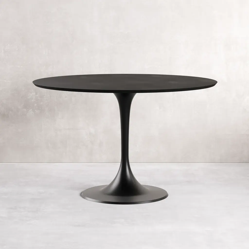 Take outdoor dining to the next level with our retro Kampen tulip-style table. The Mid-century frame of this black metal table is topped with a marble surface. This timeless piece of outdoor furniture will elevate your terrace or patio space. Dimensions: 47.24''W x 47.24''D x 29.52''H Tear Sheet