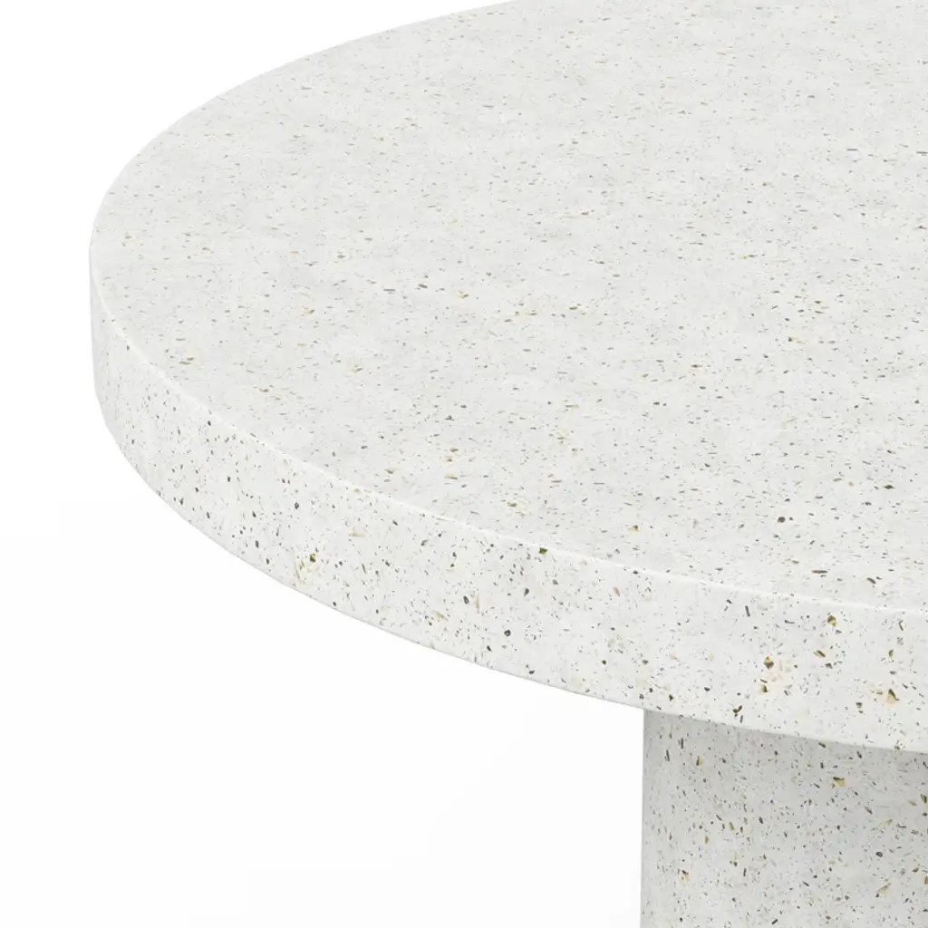 Bring on-trend and industrial style to your dining room or patio with this streamlined and stylish dining table. Made from fiber-reinforced concrete in a distressed gray hue, this table features a round top and a cylindrical pedestal base, an ideal look for modern spaces. Since this table is made from concrete, you can leave it outdoors: To clean, we recommend simply using water and mild soap. Assembly is easy, but this dining table is heavy, so when you're assembling it, we recommend phoning a friend for help (and offering payment in dumplings).