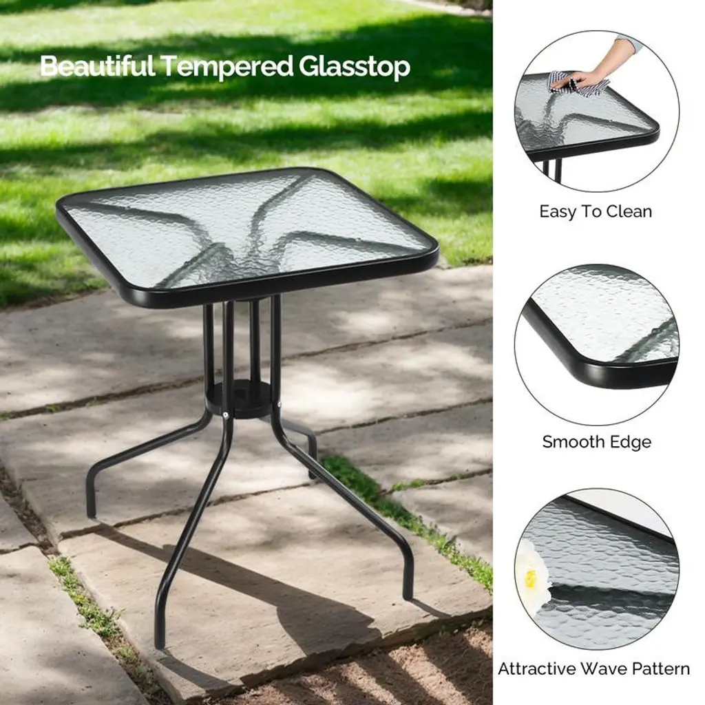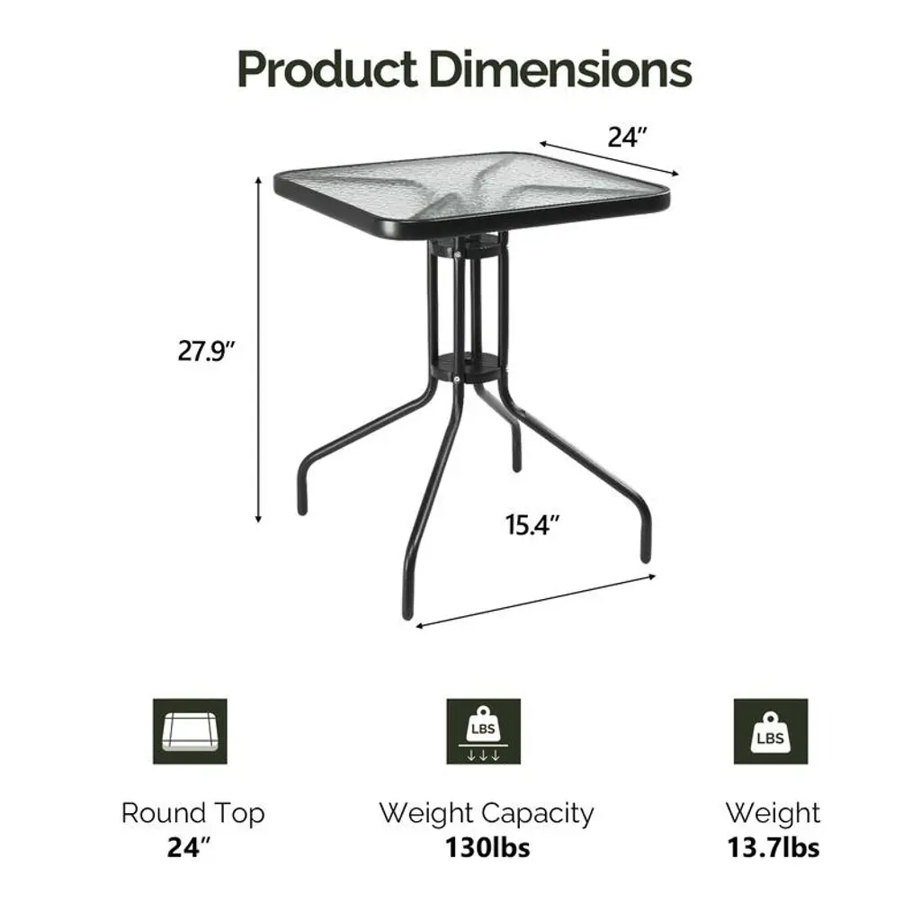 Karl Home |23.6in. Square Patio Bistro Table With Tempered Glass Top