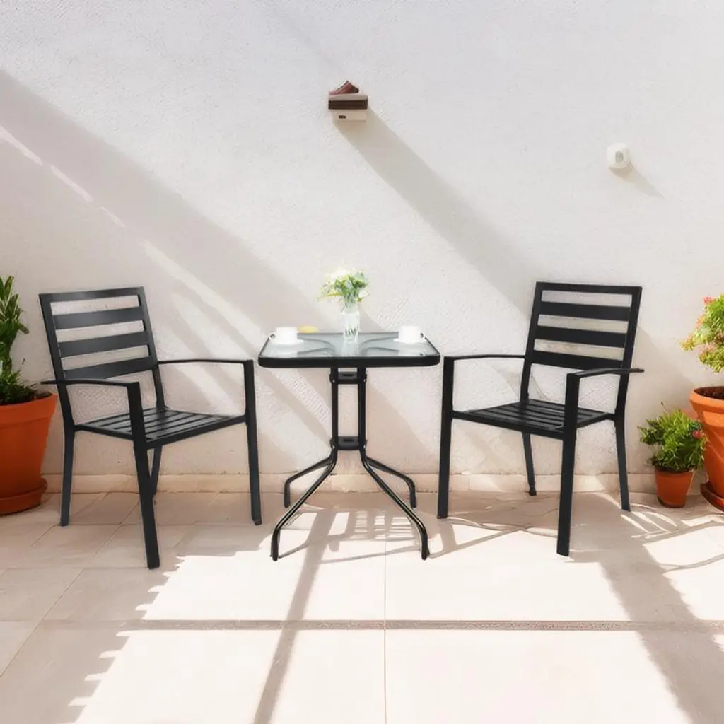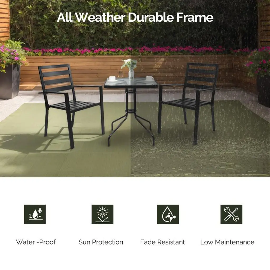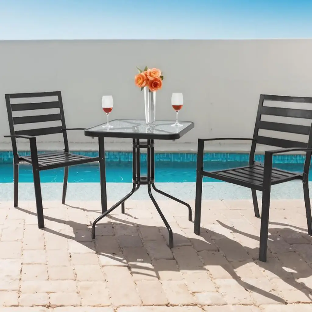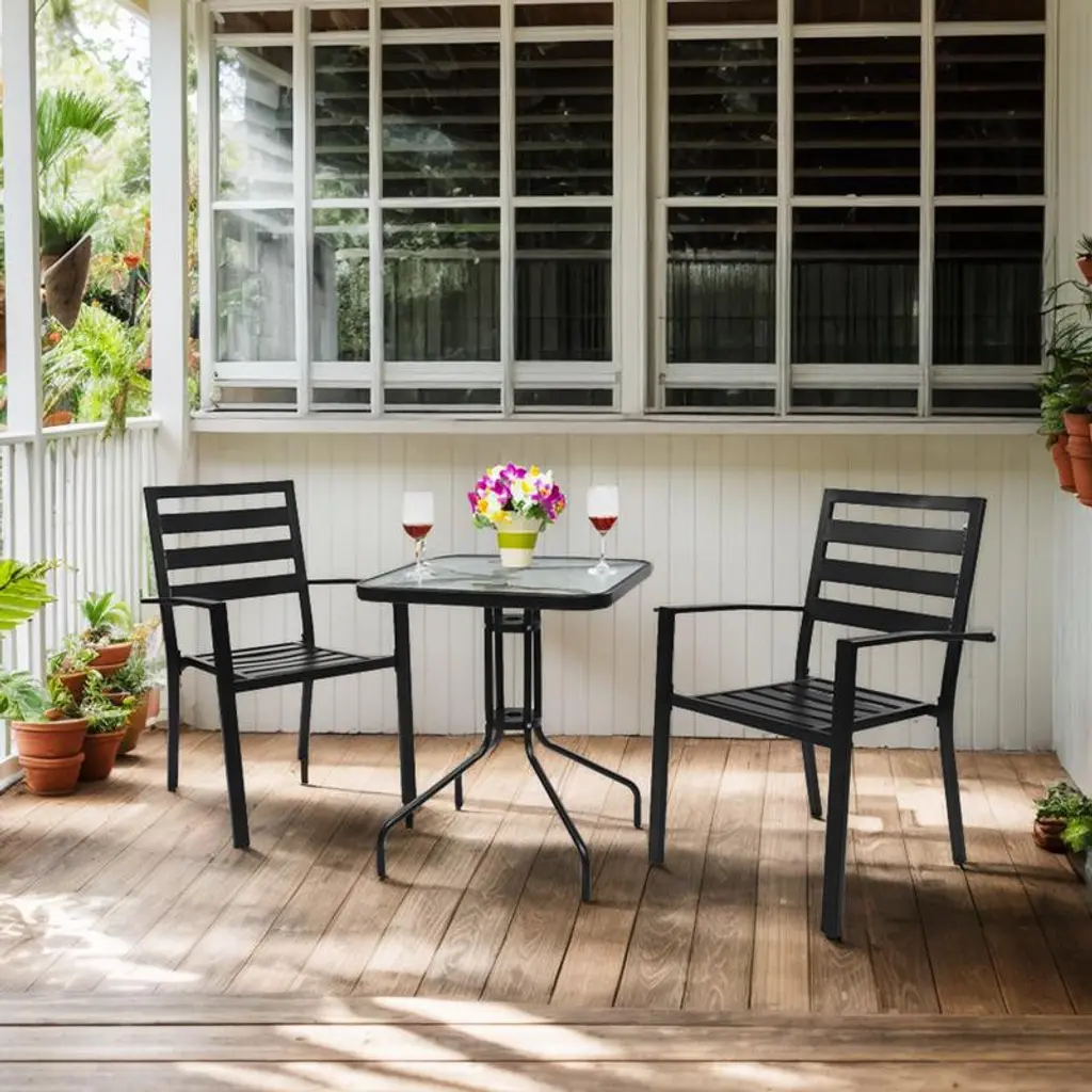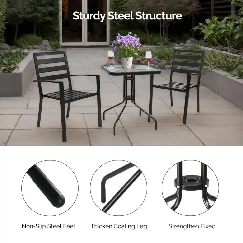 Bring charm and functionality to your outdoor setting with this 23.6-inch patio bistro table. Featuring a ripple-textured tempered glass top and a sturdy black metal frame, this table offers a modern touch while withstanding outdoor conditions. Perfect for casual dining or as a stylish coffee table, it fits effortlessly in gardens, backyards, balconies, or poolside spaces. Simple to assemble and easy to clean, it's a must-have for your outdoor living area.