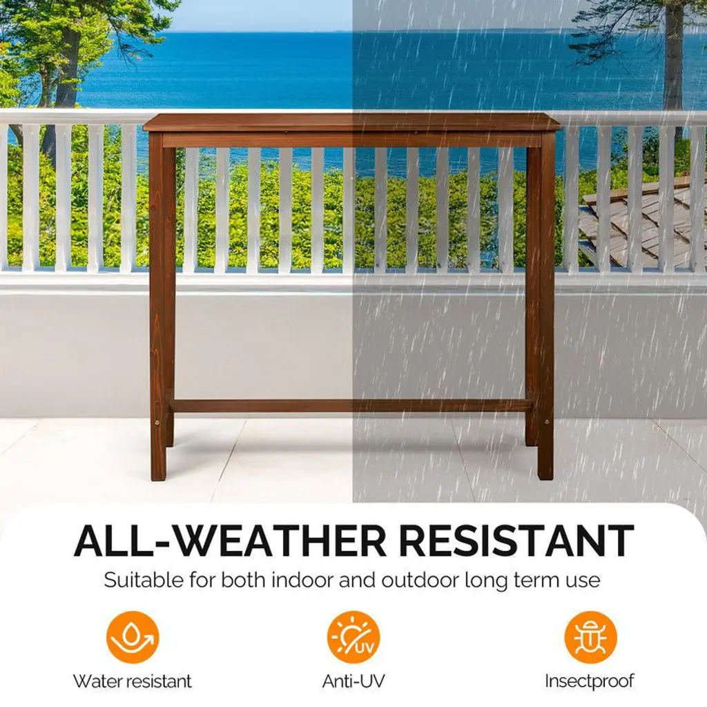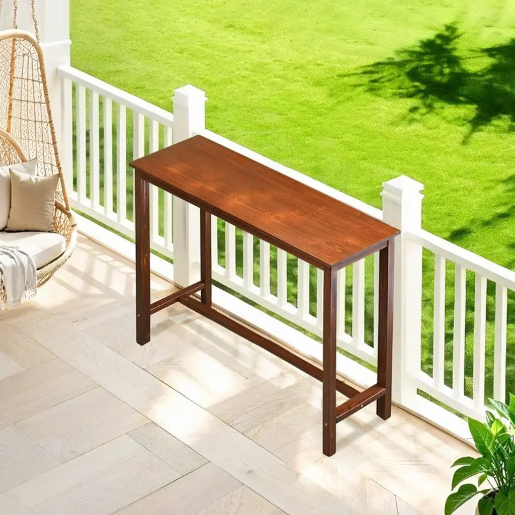 Upgrade your dining or entertaining area with this Rectangular Wood Bar Table, crafted from 100% natural fir wood for a rustic yet refined look. With a sleek rectangular design, this counter-height table blends effortlessly into kitchens, patios, dining spaces, or bars. It stands at a comfortable 39.4 inches high, ideal for pairing with bar stools or standing conversations. Built with reinforced crossbars for added stability and featuring an integrated footrest for ergonomic comfort, this pub table brings both functionality and style to any space, indoors or outdoors.