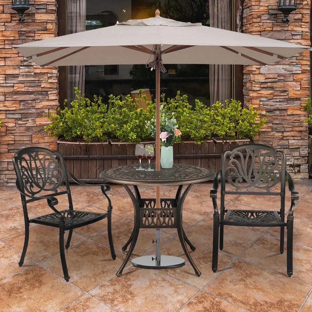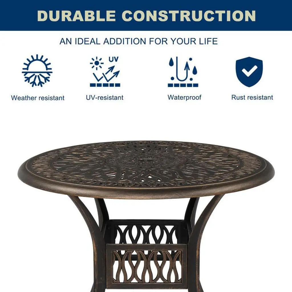 Classic cross-weave style combined with heavy-duty construction work to create a classic, long-lasting, furniture piece. Featuring adjustable leveling feet so you can be sure your table is stable. Sit around the table and enjoy morning coffee or have a nice conversation outside on the balcony, front porch, or deck. Perfect for outdoor relaxation.