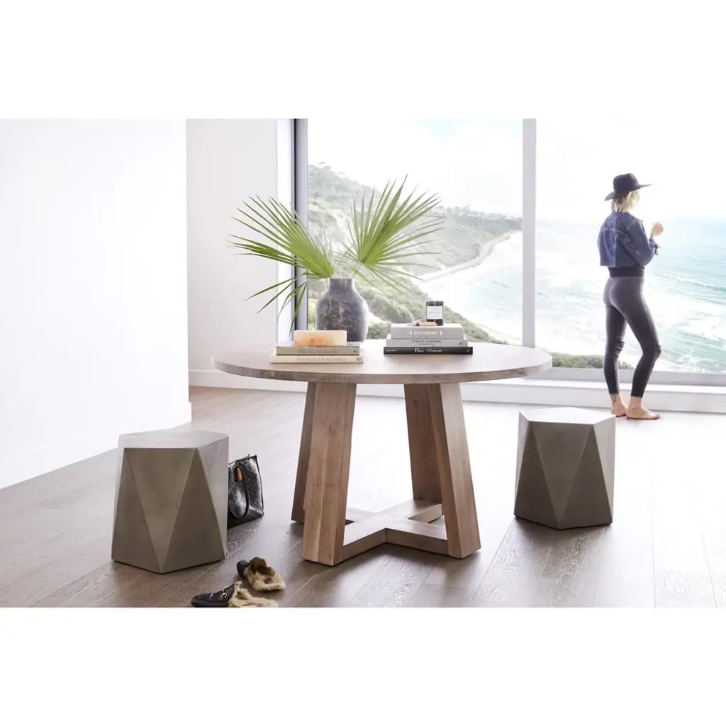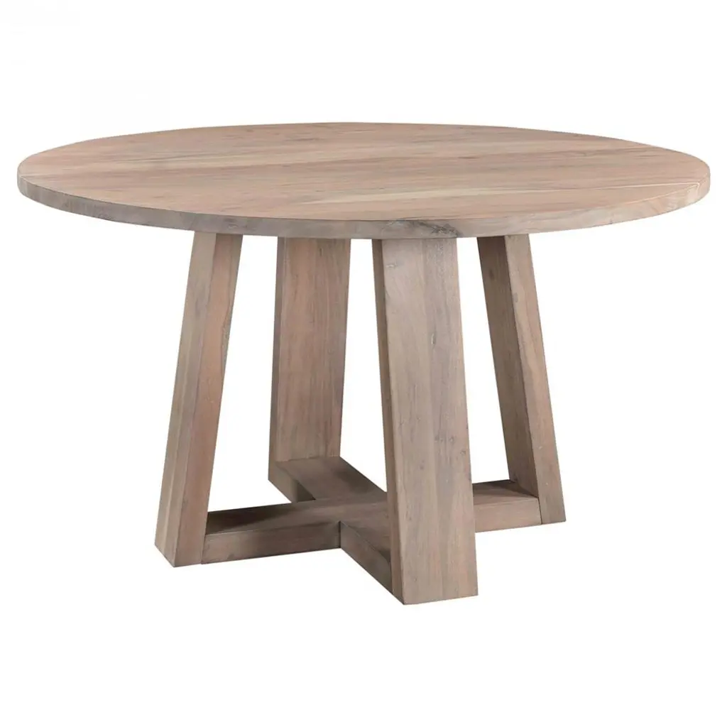 Karlee Modern Classic White Washed Acacia Wood Round Dining Table - 54"w