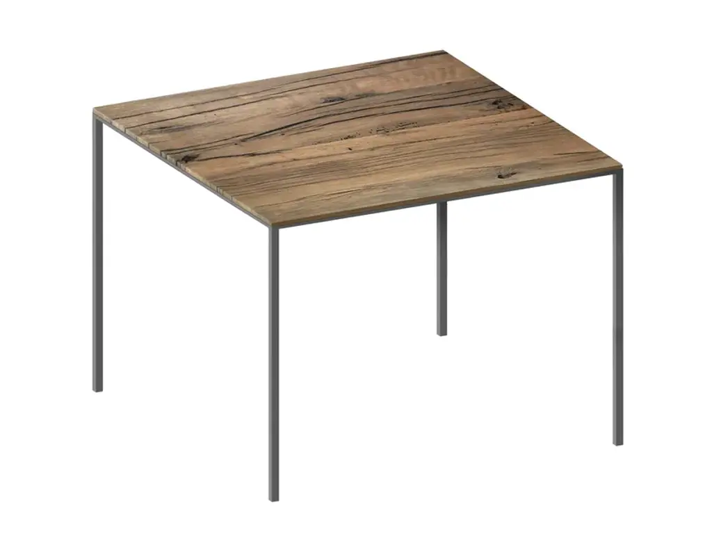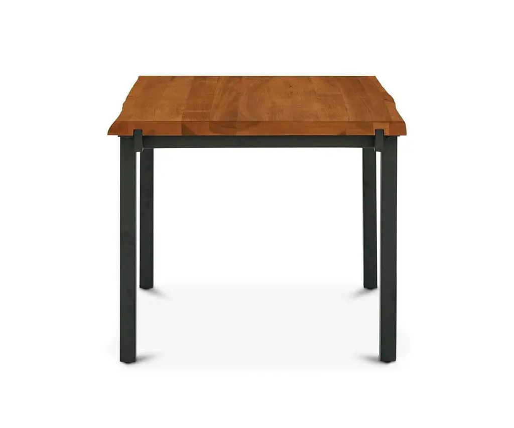 Elements of earthy rustic and industrial design combine to create the handsome Karsten Square Dining Table. The top is cut from solid American poplar with a smooth live edge and sits atop the sturdy black powder-coated metal frame. This attractive piece serves to elevate your decor while simultaneously grounding your dining space. To enhance the rustic look of the wood, the surface of this piece is both intentionally distressed and cut with a smoothed live edge, making each piece one-of-a-kind.
