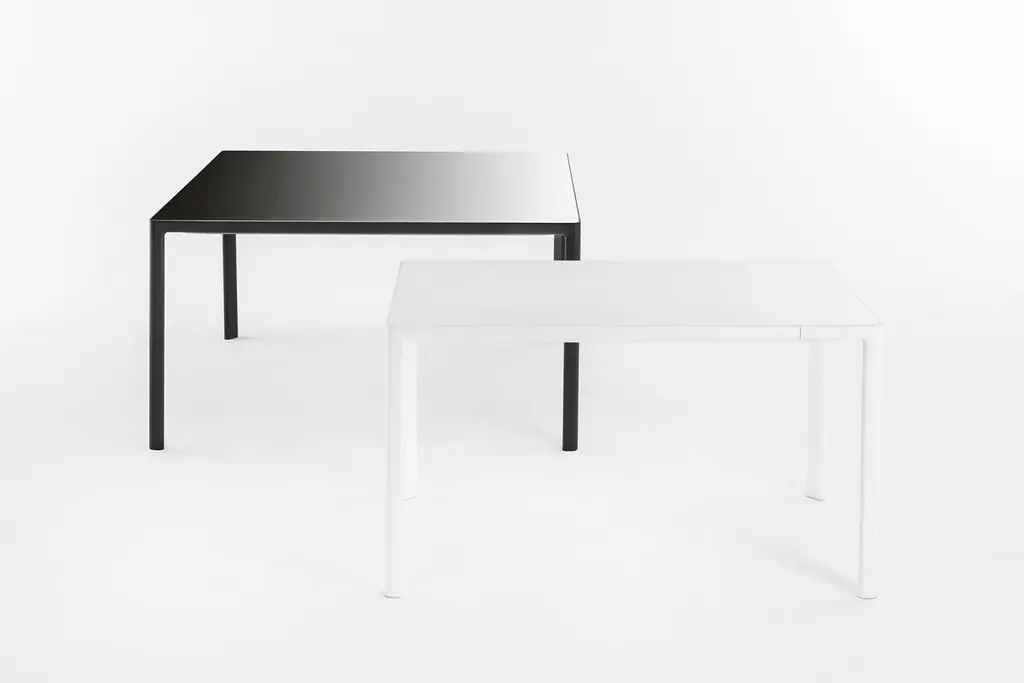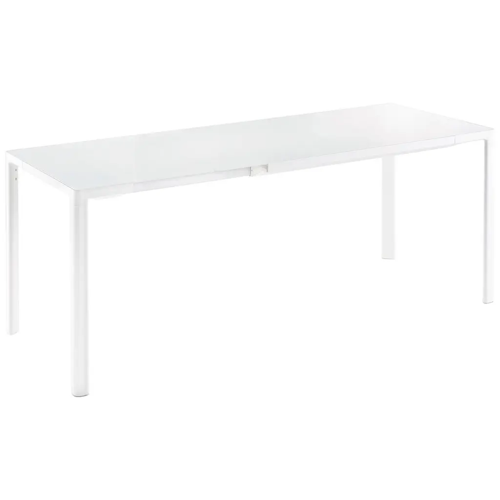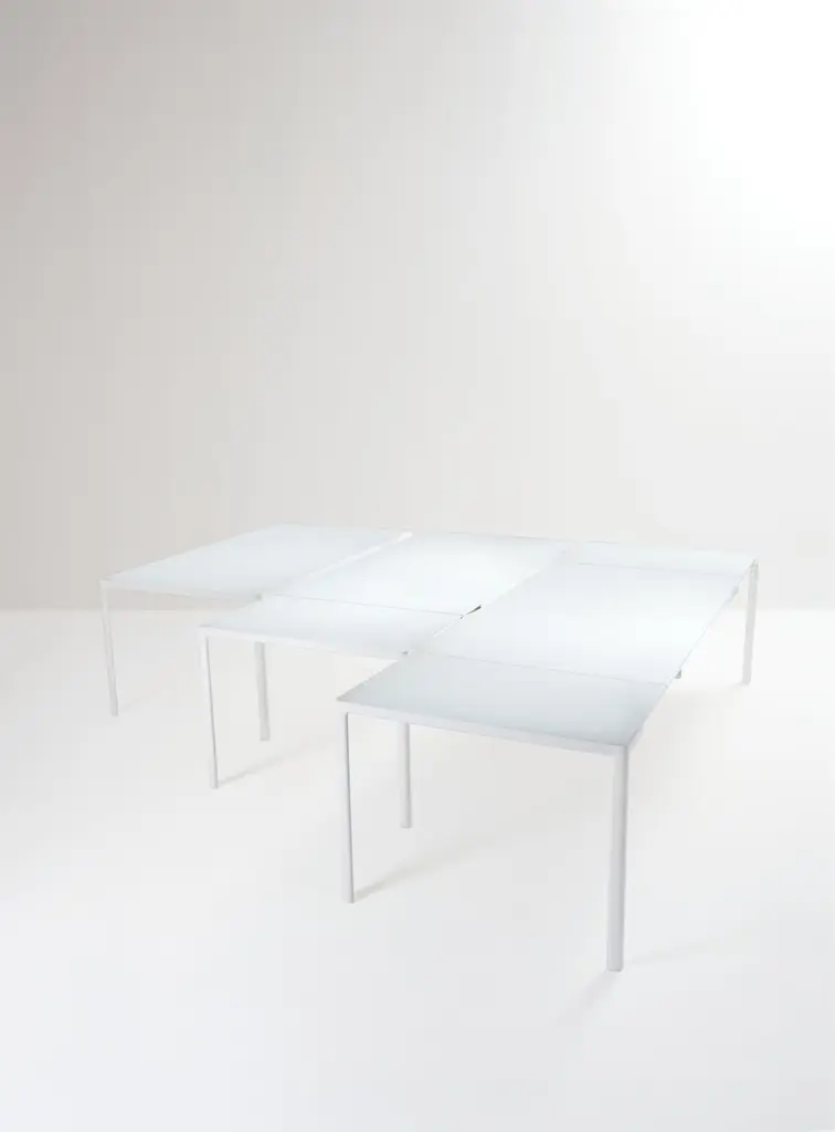 Kartell’s collection of tables now offers yet another function thanks to the extension table designed by Piero Lissoni. Zoom has a solid and rigorous frame but the legs of bent laminate taper its shape. The tempered glass top back-painted white is elegant and austere but is also sturdy and scratch resistant. Zooom comes with a fixed frame.Made of: Tempered glass top/ aluminum base.