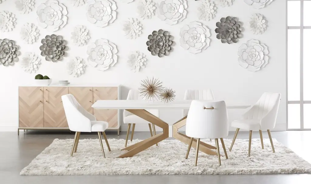 Kate Rectangle Dining Table, Ivory/brass