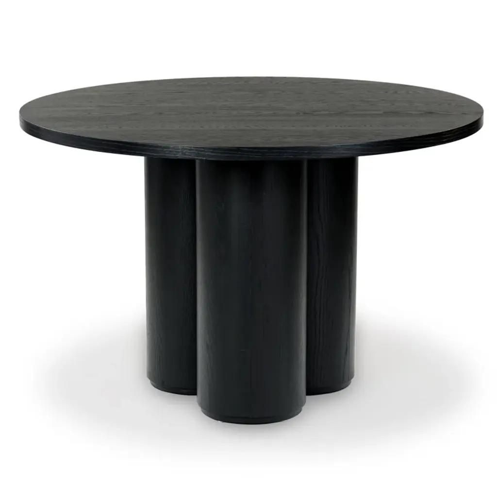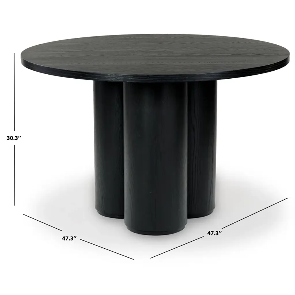 Presenting the Kathalina Round Wood Dining Table. Beautifully crafted from veneer, plywood, and manufactured wood, this dining table offers a touch of timeless elegance for your home. With a rich black color, the Kathalina dining table adds a sophisticated artistry to any dining space. Its round design gives a warm and inviting look, making every meal a special occasion. Easy to clean and maintain, this table merges functionality and aesthetic appeal seamlessly. The Kathalina Round Wood Dining Table is an impressive addition to any home decor, an excellent choice for those who value style and subtlety. It stands poised to be the centerpiece of numerous memorable meals and hearty conversations. Get your Kathalina Round Wood Dining Table now and create beautiful dining experiences for you and your loved ones!