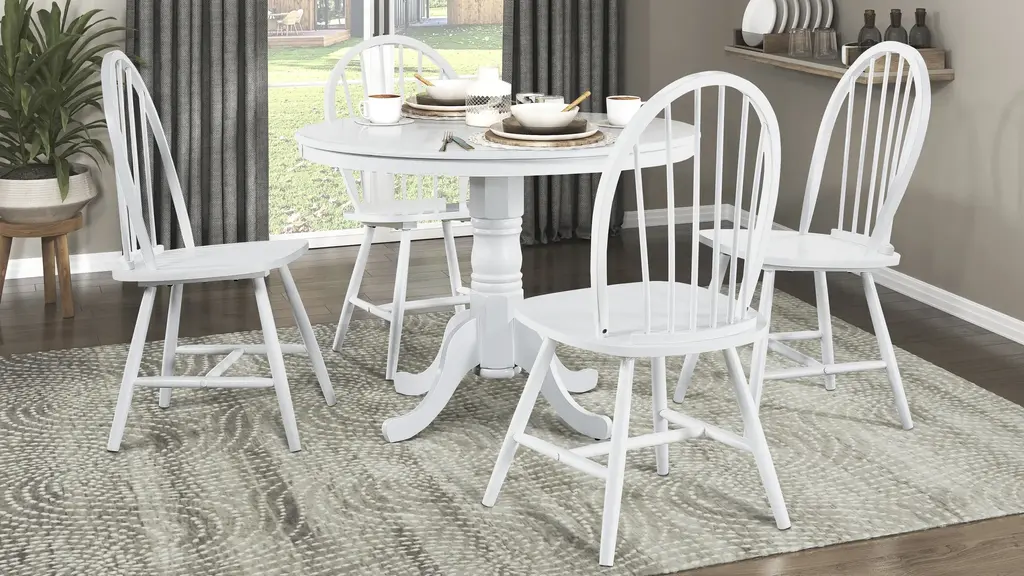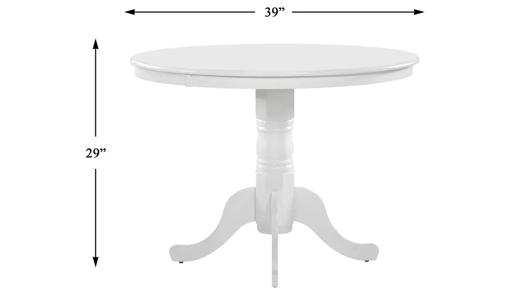 Kaydee Dining Table is traditional profile will complete the look you desire for your home. The traditional round tabletop, and pedestal base, lends a classic accent to the look of the collection, making it the perfect addition to your casual dining space. A white finish is utilized its hue a crisp palette perfect for your tabletop accessories.