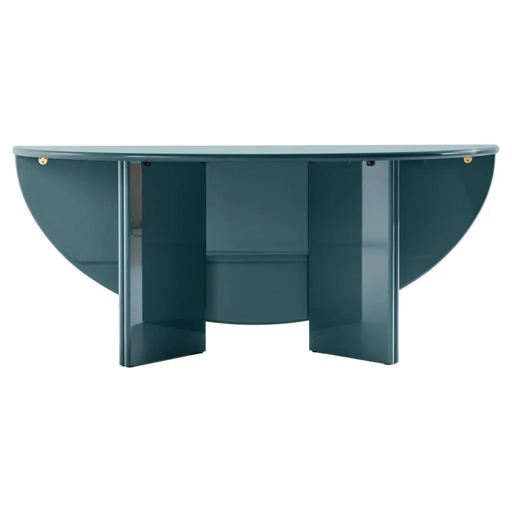Kazuhide Takahama Antella Multi-functional Table For Cassina Japanese architect Kazuhide Takahama designed Antella as a truly multi-functional piece of furniture. Based on specific needs, it can be transformed from a wall console to a modern oval table, making Antella iconic and versatile.The structure of the lacquered console is polyester painted, reminiscent of the ancient lacquer tradition admired by the author and often used on other products in the Simon collection from the late 1960s.The two semi-circular top pieces and the hinged elements, held together by a magnet, allow the structure to be folded in half, depending on the space available, for a unique space-saving piece that can be placed against a wall or opened up for use as a dining table.FRAMEDouble MDF hinged panels, locked together by magnetic latch.USEWall mounted or completely open.Kazuhide Takahama’s Antella is a dual-purpose piece: a console that can be transformed into an oval table. The polyester painted frame, with a gloss or matte finish, is evocative of the ancient art of lacquer work, which was used on other products in the SimonCollezione. The two leaves are hinged and, in the console position, are secured using a magnet. Where space is available they can be opened up to form the table. Against the wall, Antella is a console. In the middle of the floor, it becomes a large table.Important information regarding images of products:Please note that some of the images show other colors and variations of the model, these images are only to present interior design proposals. The item that is selling is on the first image.Important information regarding color(s) of products:Actual colors may vary. This is due to the fact that every computer monitor, laptop, tablet and phone screen has a different capability to display colors and that everyone sees these colors differently. We try to edit our photos to show all of our products as life-like as possible, but please understand the actual color may vary slightly from your monitorAbout The Designer: Takahama is best known as a furniture and lighting designer, and has produced work for Knoll, Gavina, and B&B Italia.About The Manufacturer:Established in 1927 by Cesare and Umberto Cassina in Meda, Italy, Cassina launched industrial design in Italy in the 1950s, based on a totally innovative approach that marked the transition from artisan production to mass production. With a mindset focused on research and innovation, Cassina combines technology and long-standing artisan craftsmanship. Memory, research, innovation. Cassina blends traditional skills and superior productivity, meticulous attention to detail and passion, uniqueness and experimentation, wellbeing and sustainability. Today, the company continues to address new lifestyles with the creation of complete, harmonious interior decor solutions that embody the best contemporary design for all areas of the home.