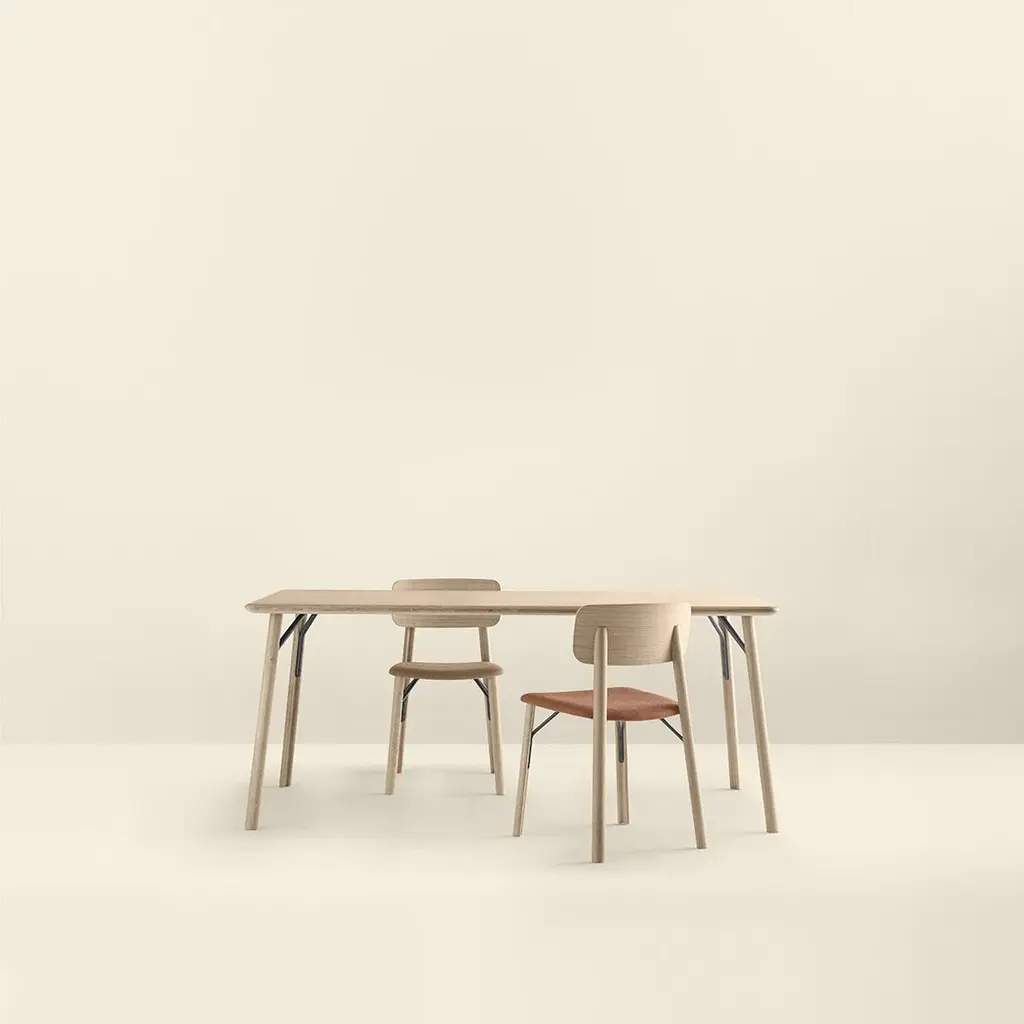 KEA tables are an exercise in utmost simplicity combined with the pure character of wood, our preferred material, and iron. The concave profile of the table legs houses the wrought iron which provides structure to the whole piece. This table is available in round, square and rectangular versions.