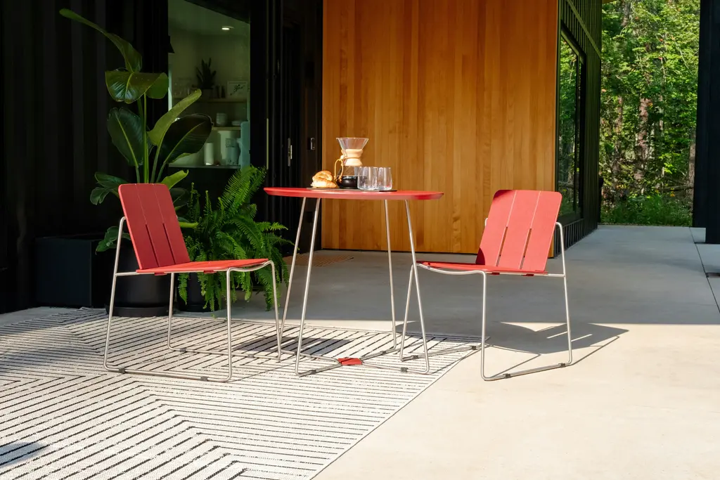 Worry not - the Keene Dining Table (2025) pairs durable HDPE plastic with metal frames to weather the elements year round. From Loll Designs, the celebrated maker of modern outdoor furnishings, the compact table comfortably seats two at mealtime with space for more in casual settings. As founder Greg Benson explains, "We make outdoor furniture for the modern lollygagger." Keene is offered in powder-coated or brushed stainless steel with foot glides for floor protection indoors or out. Made in the USA.