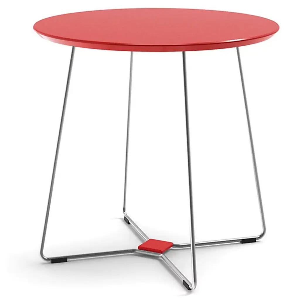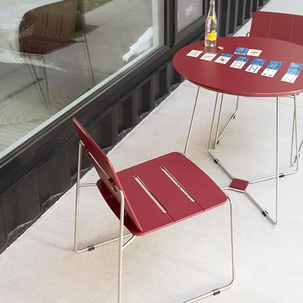The Keene Outdoor Dining Table from Loll Designs brings bistro dining to your backyard with its round top and slender, stainless steel structure. Resting on four small glides that protect the surface below, slim steel struts extend from a square center and angle up and inward to elevate a beveled top of Recycled High-Density Polyethylene (HDPE). Made in the USA, the assembly process uses recycled post-consumer milk jugs due to their lack of pigmentation. At the same time, a square accent in the base color coordinates with the top for a bit of consistency, able to endure rain, wind, and sun.