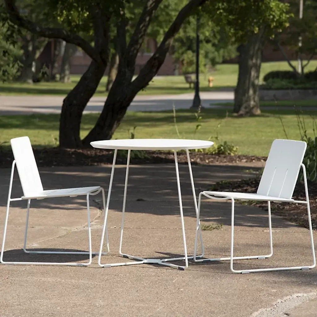 The Keene Outdoor Dining Table from Loll Designs brings bistro dining to your backyard with its round top and slender, stainless steel structure. Resting on four small glides that protect the surface below, slim steel struts extend from a square center and angle up and inward to elevate a beveled top of Recycled High-Density Polyethylene (HDPE). Made in the USA, the assembly process uses recycled post-consumer milk jugs due to their lack of pigmentation. At the same time, a square accent in the base color coordinates with the top for a bit of consistency, able to endure rain, wind, and sun.
