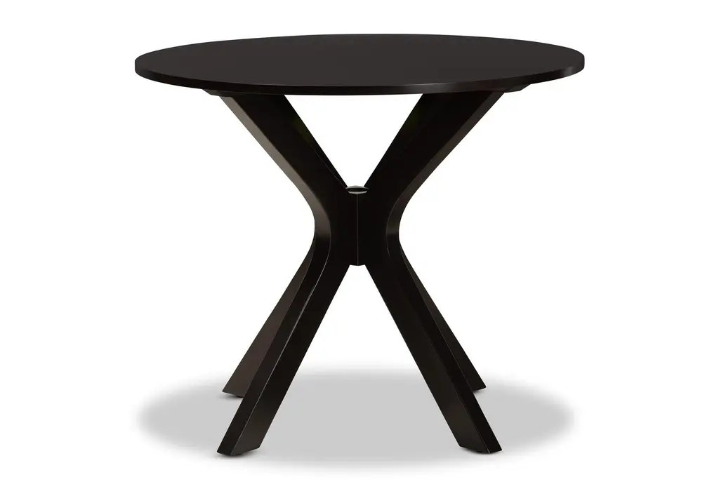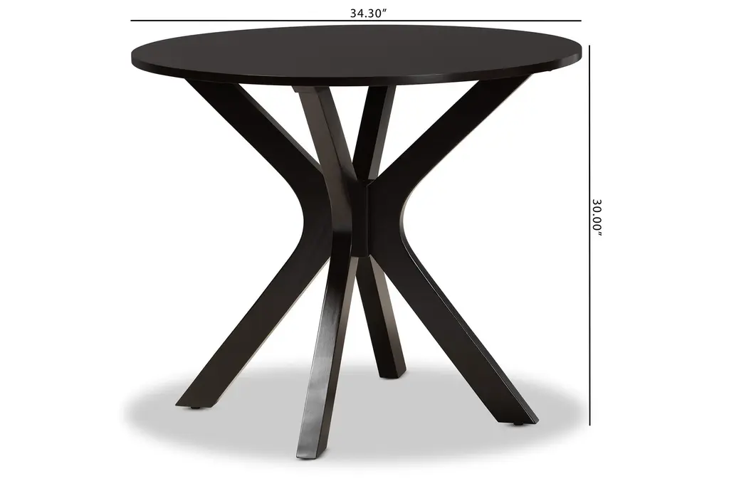 The Keni Modern Dark Brown 34" Wide Round Wood Dining Table is a stylish and functional addition to any modern dining space. Crafted from high-quality rubberwood and MDF wood, this table features a sleek dark brown finish that complements a variety of interior designs. Its round tabletop design comfortably seats up to four people, making it perfect for intimate gatherings and family meals.