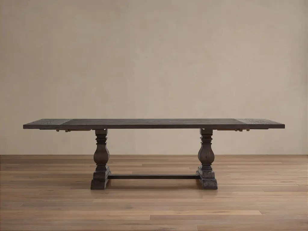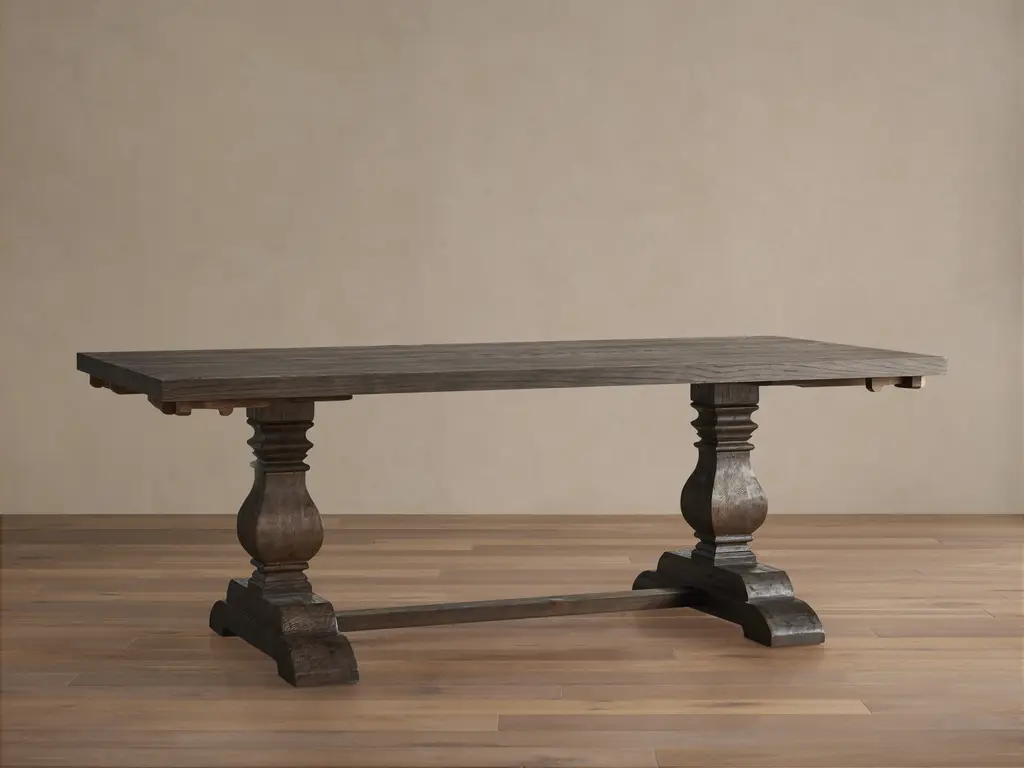 Every plank in our classic Kensington Dining Collection tells a story of expert craftsmanship. Our artisan partners build each piece by hand from solid, sustainably sourced oak and Finnish pine wood complemented by a wood top. Distinctive finishes are layered with stain and distressed detailing to accentuate the wood’s naturally unique features, resulting in a timeless antiqued aesthetic.