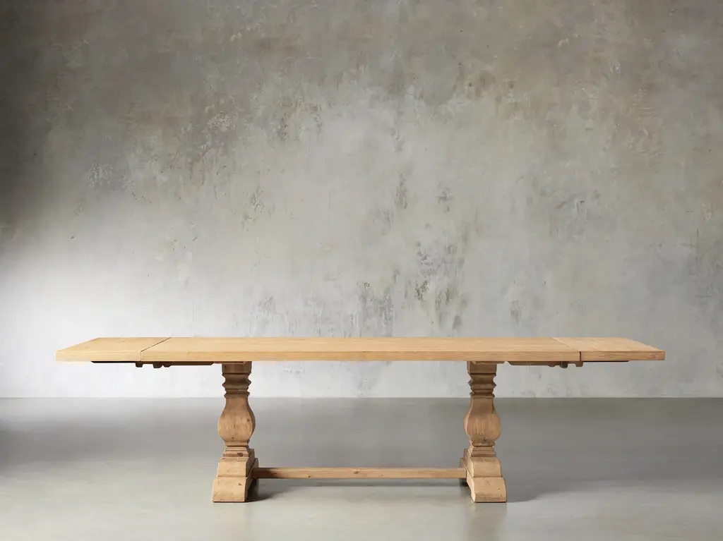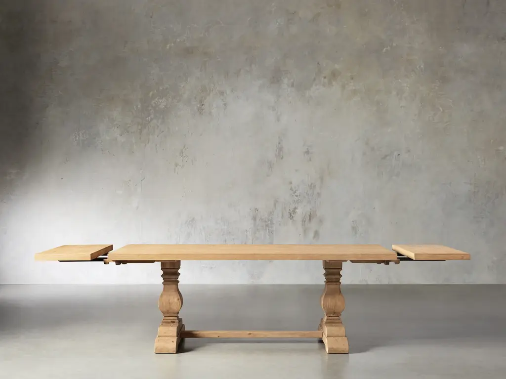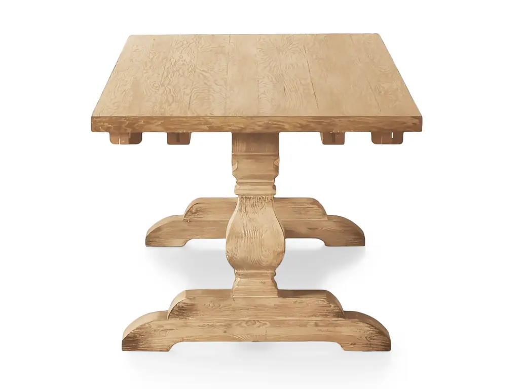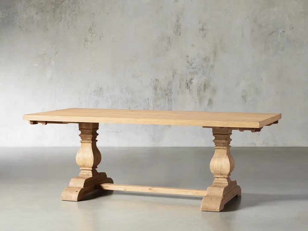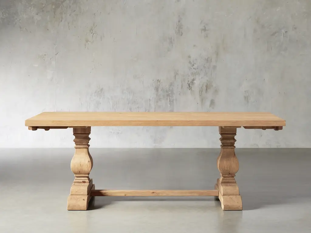 Every plank in our classic Kensington Dining Collection tells a story of expert craftsmanship. Our artisan partners build each piece by hand from solid, sustainably sourced oak and Finnish pine wood complemented by a wood top. Distinctive finishes are layered with stain and distressed detailing to accentuate the wood’s naturally unique features, resulting in a timeless antiqued aesthetic.