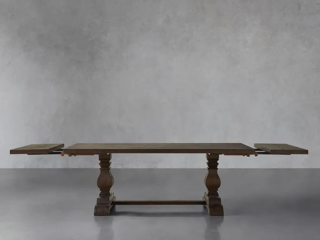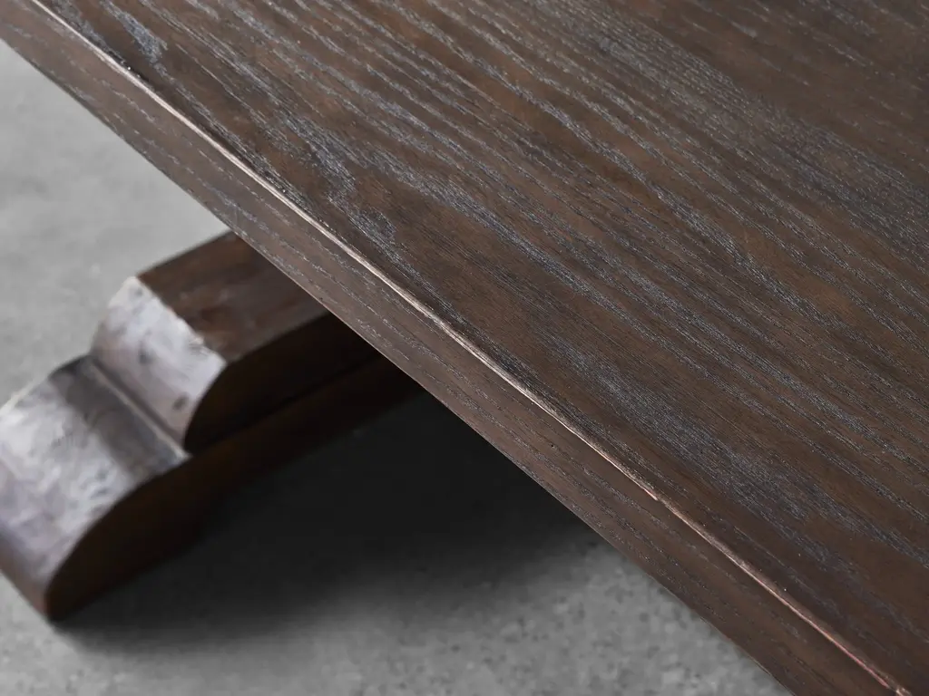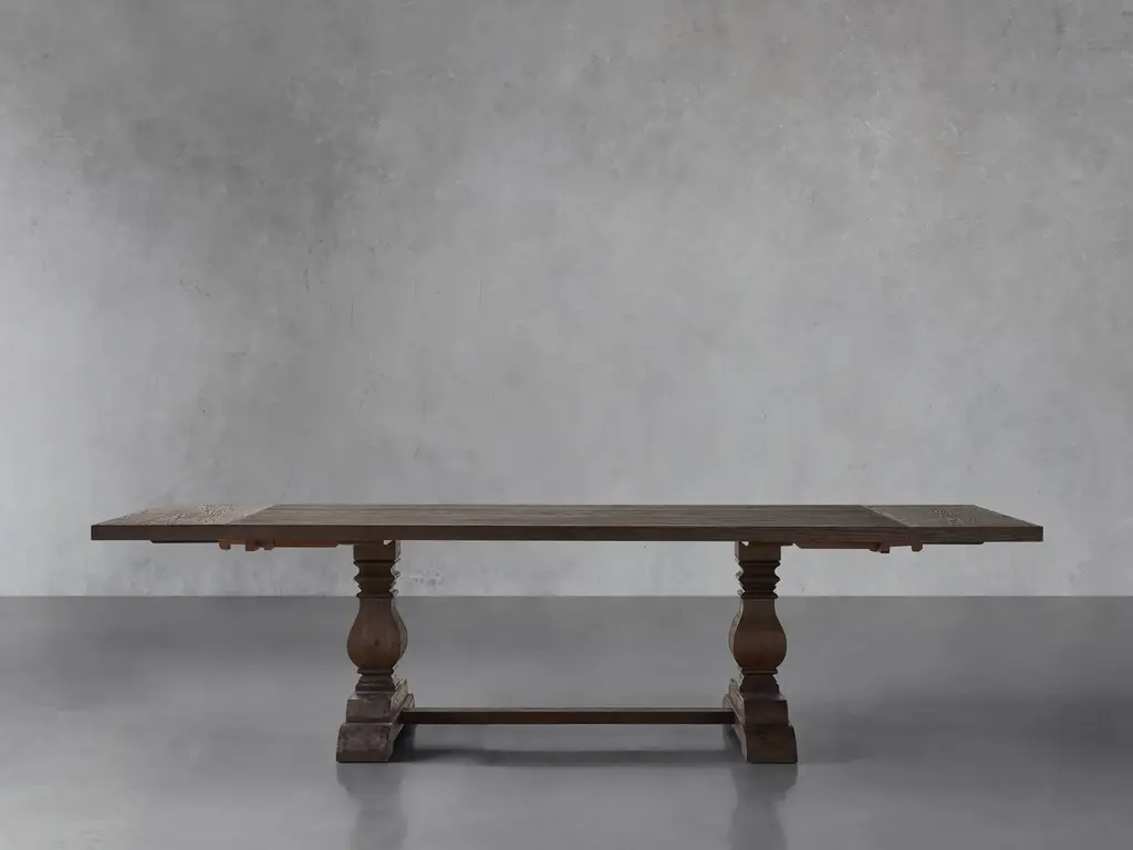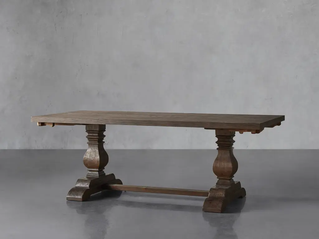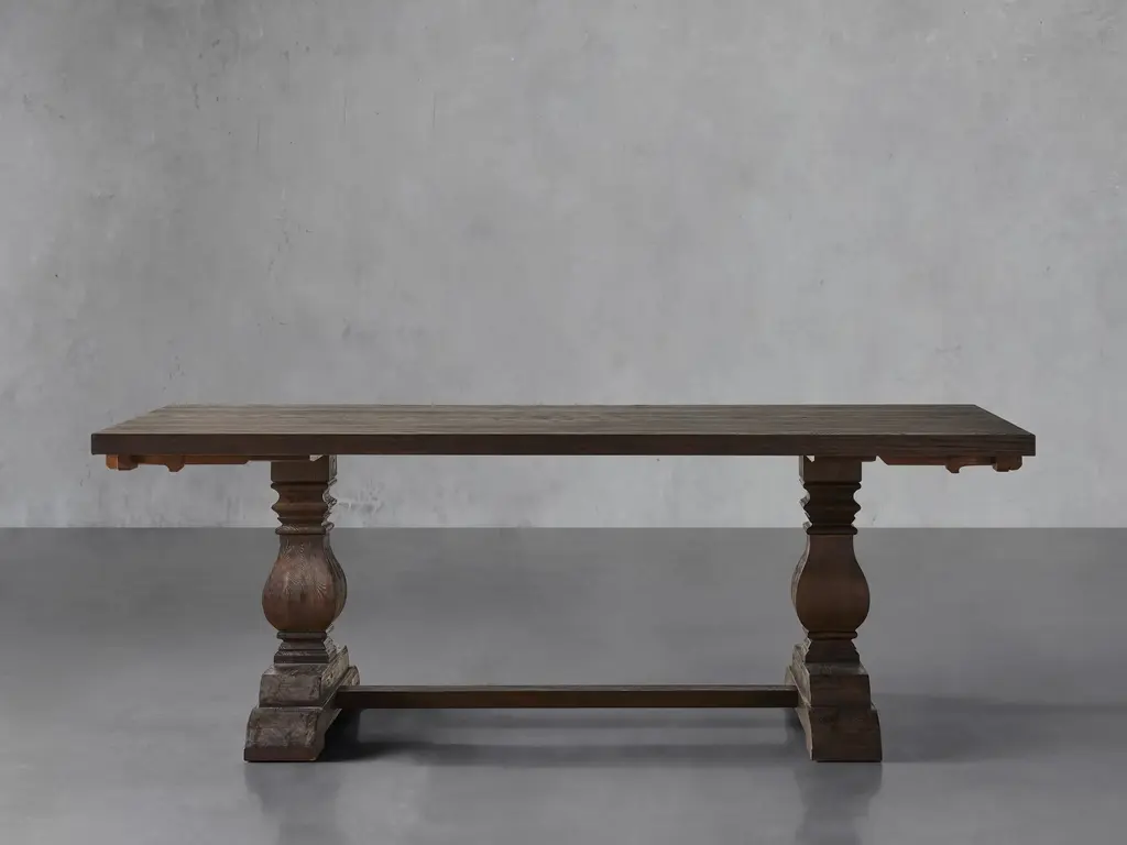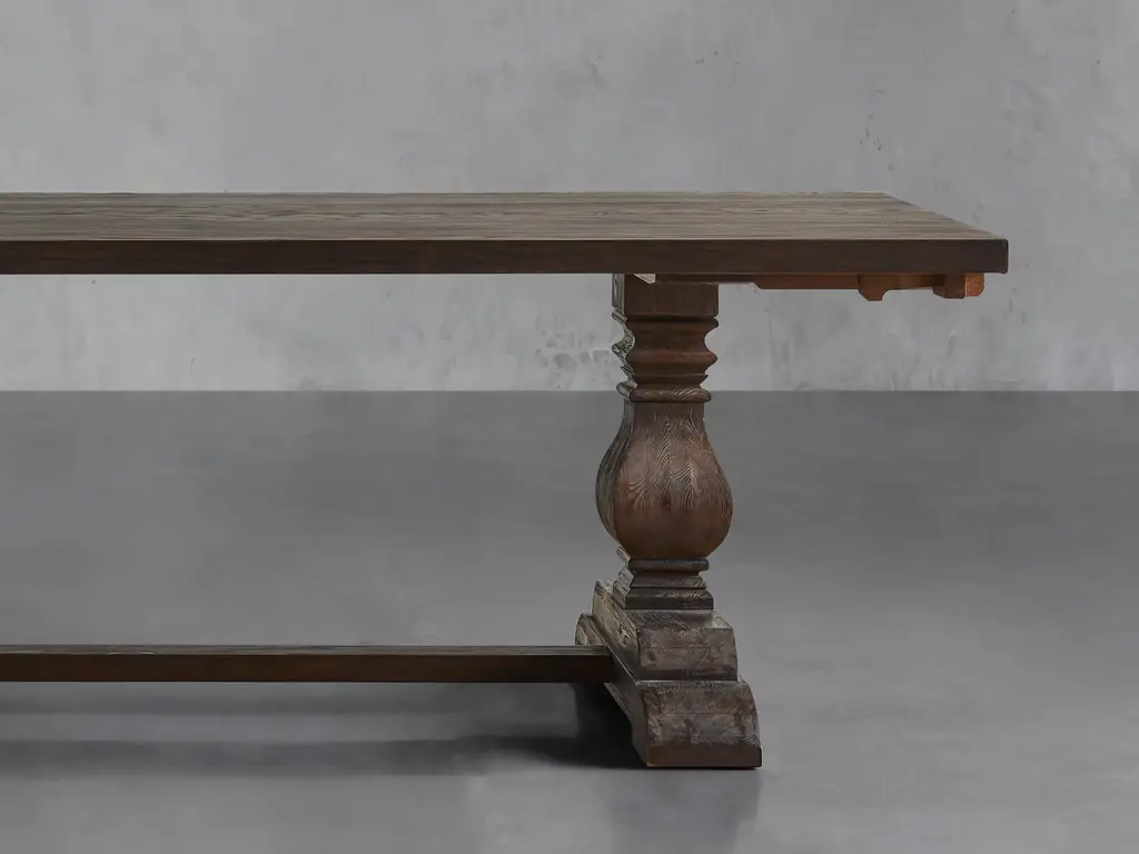 Every plank in our classic Kensington Dining Collection tells a story of expert craftsmanship. Our artisan partners build each piece by hand from solid, sustainably sourced oak and Finnish pine wood complemented by a wood top. Distinctive finishes are layered with stain and distressed detailing to accentuate the wood’s naturally unique features, resulting in a timeless antiqued aesthetic.