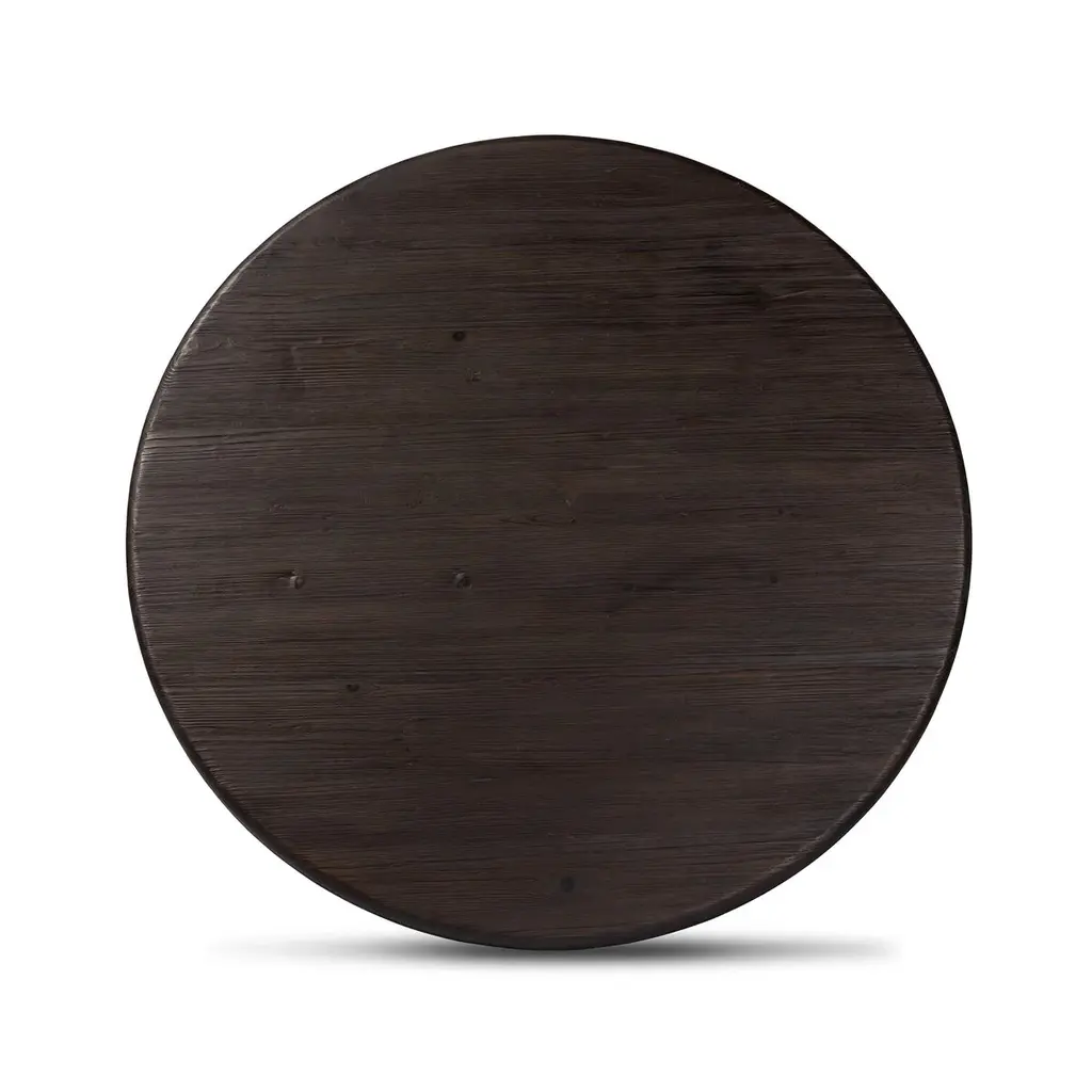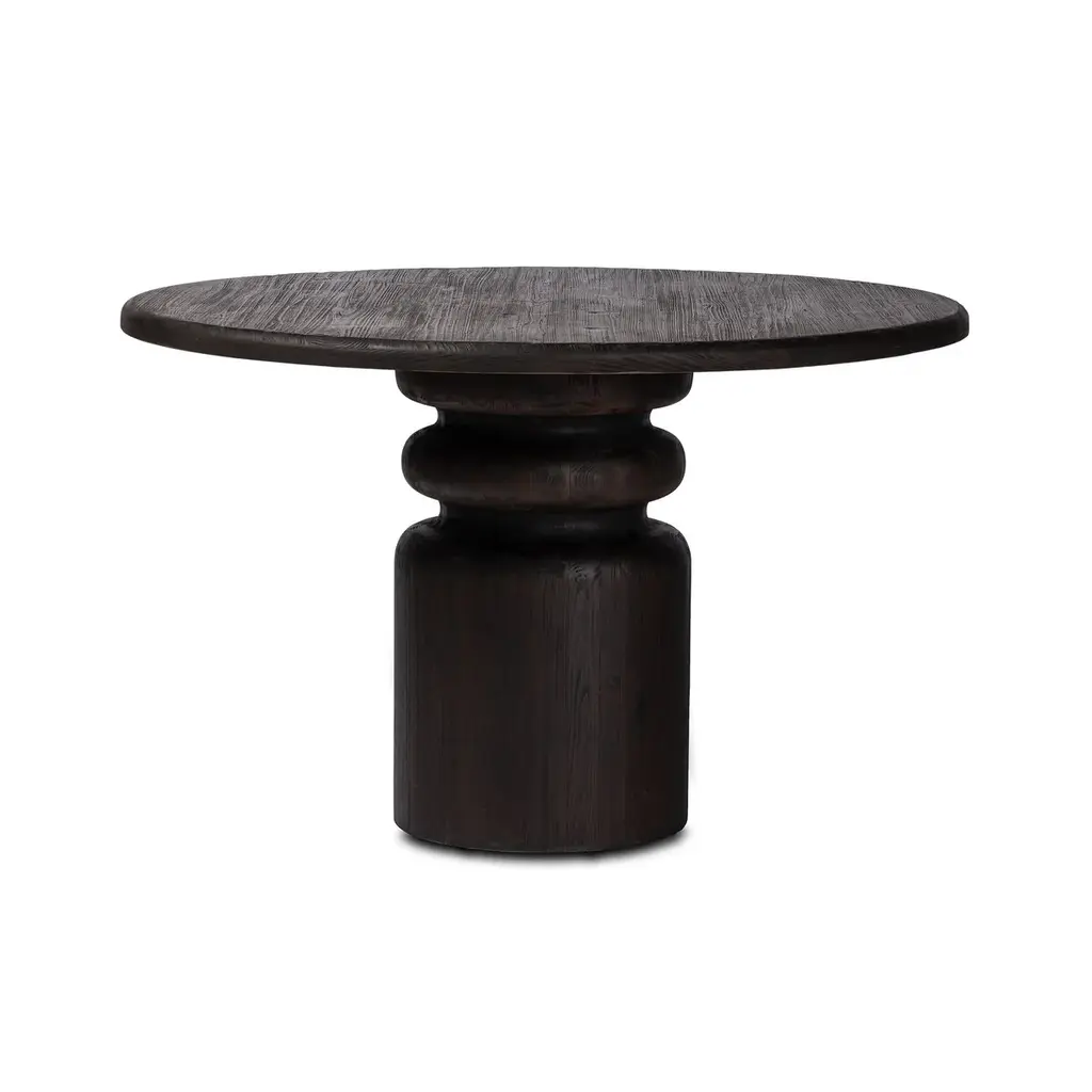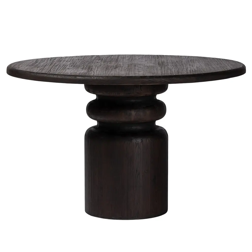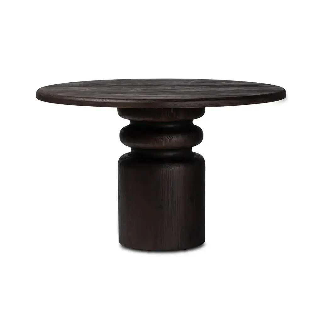 Solid pine pairs with a burnt finish for a warm, antiqued look, while a pedestal-style base and thoughtful detailing update the classic turn-shaped table.