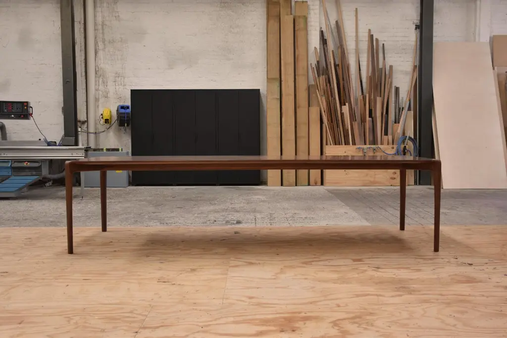 Kingston Dining Table by Daniel PooleDimensions: D 90 x W 240 x H 74 cm. Materials: American Back Walnut with 10% gloss lacquer.This table includes a certificate of authenticity. Please contact us. Daniel Poole PL is a bespoke furniture design studio and product design studio in Melbourne, Australia. Providing bespoke design consultancy, design strategy and development combined with a comprehensive in-house master cabinet-making studio. Daniel Poole studied Industrial Design at RMIT followed by a qualification in Cabinet-Making. Daniel Poole PL commissions are certified with authenticity and 10 years of warranty.