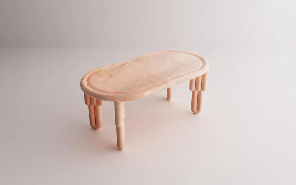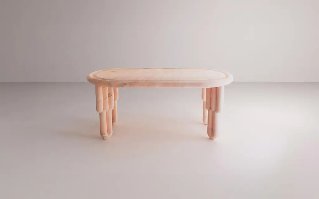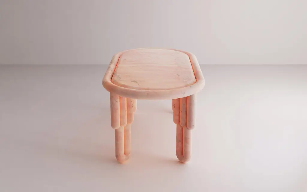 Kipferl Dining Table, Pink Marble, Sculptural, Modern, Rounded, Oblong