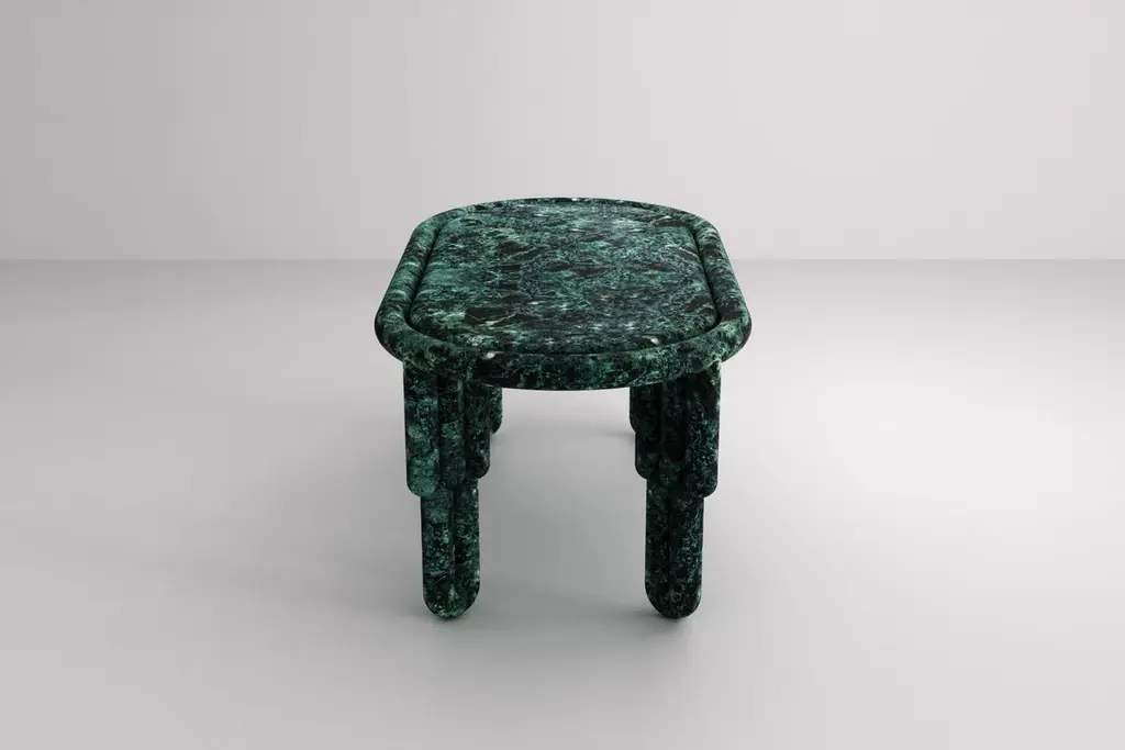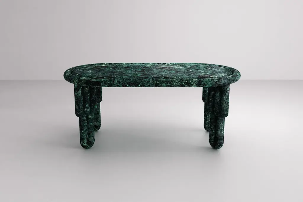 Kipferl Dining Table Sculptural, Modern, Rounded, Oblong In Green Marble