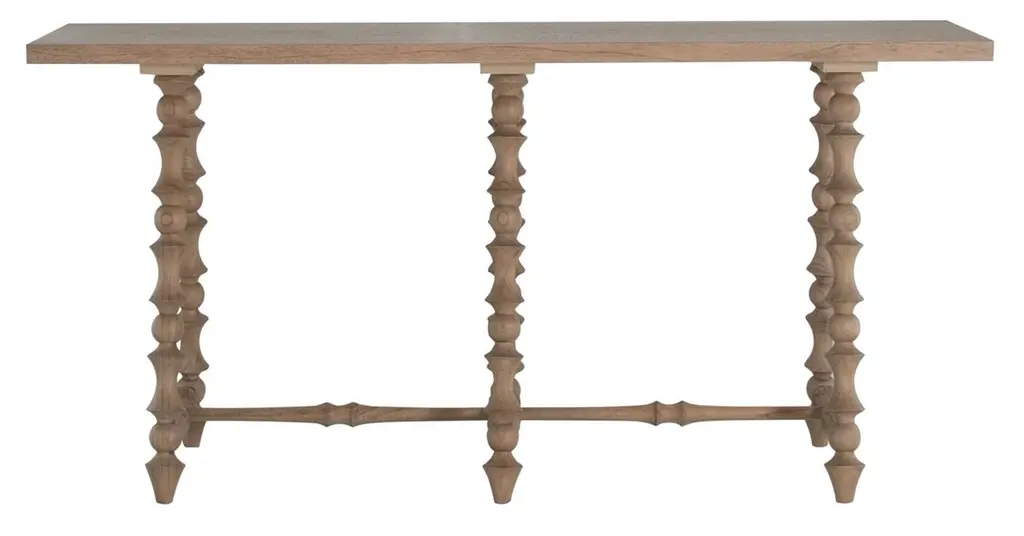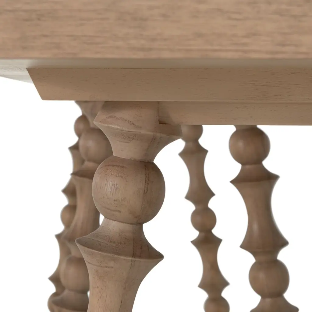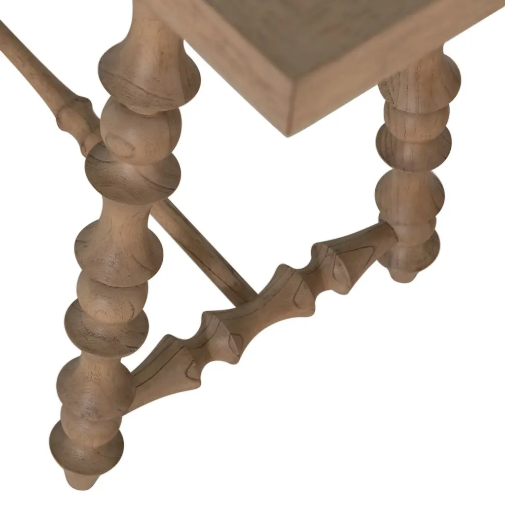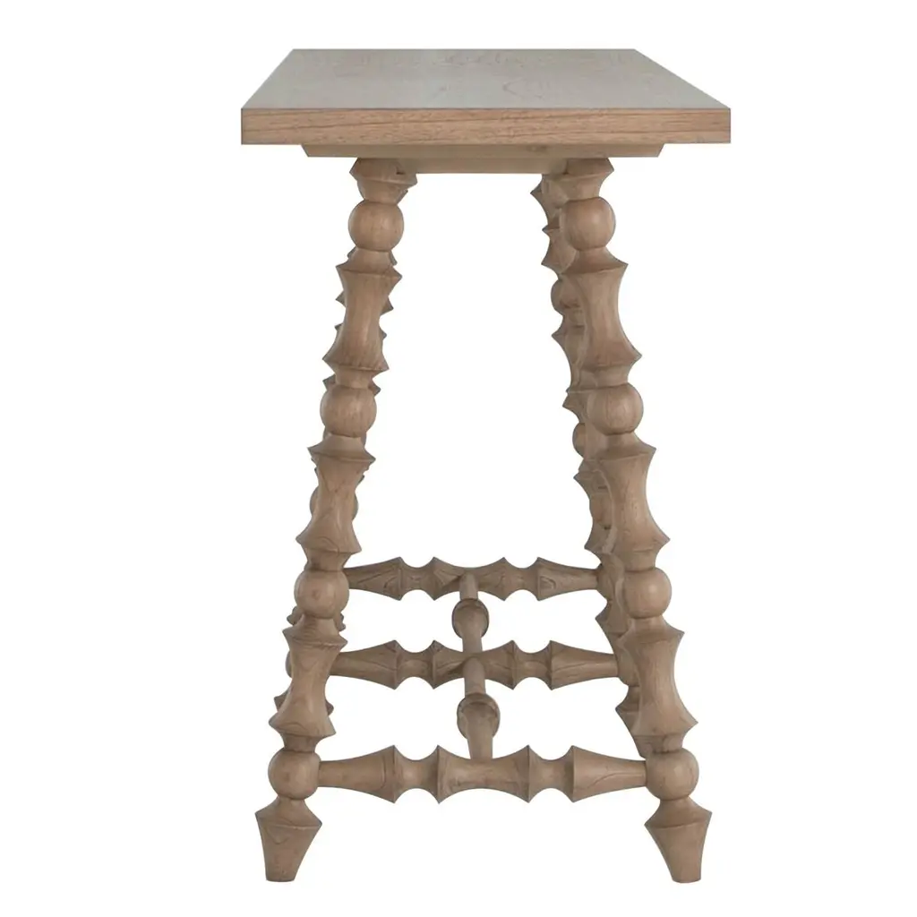 The Kirkwood Console Table is a modern interpretation of the Jacobean antique spindle design, featuring intricately turned legs that add a touch of classic elegance to any space. This console table is made from high-quality Mindi wood and features an angled veneer pattern on the tabletop, giving it a contemporary edge. Whether placed in an entryway, living room, or dining area, the Kirkwood Console Table offers a stylish and timeless addition to your decor, blending old-world charm with modern craftsmanship.