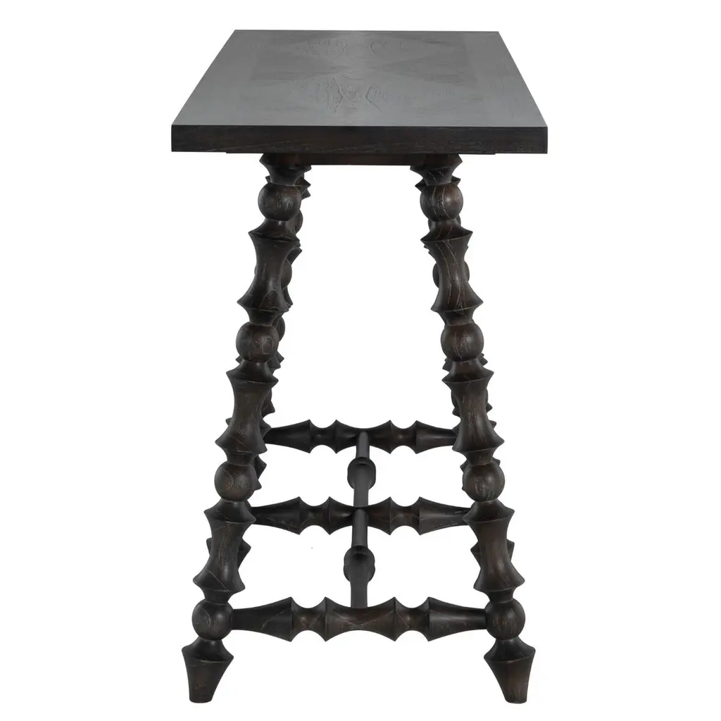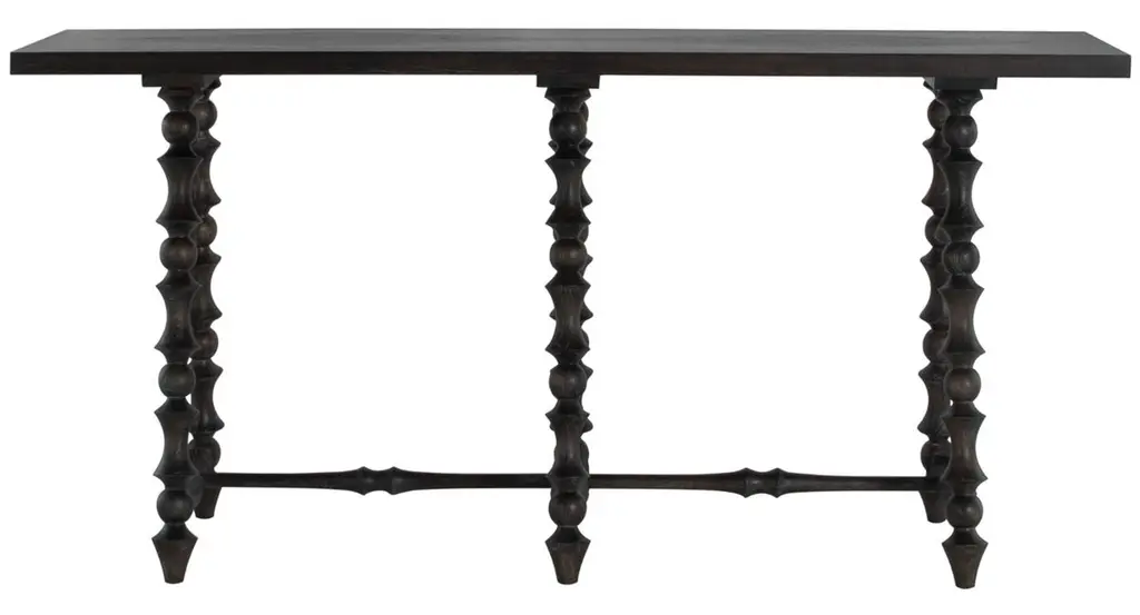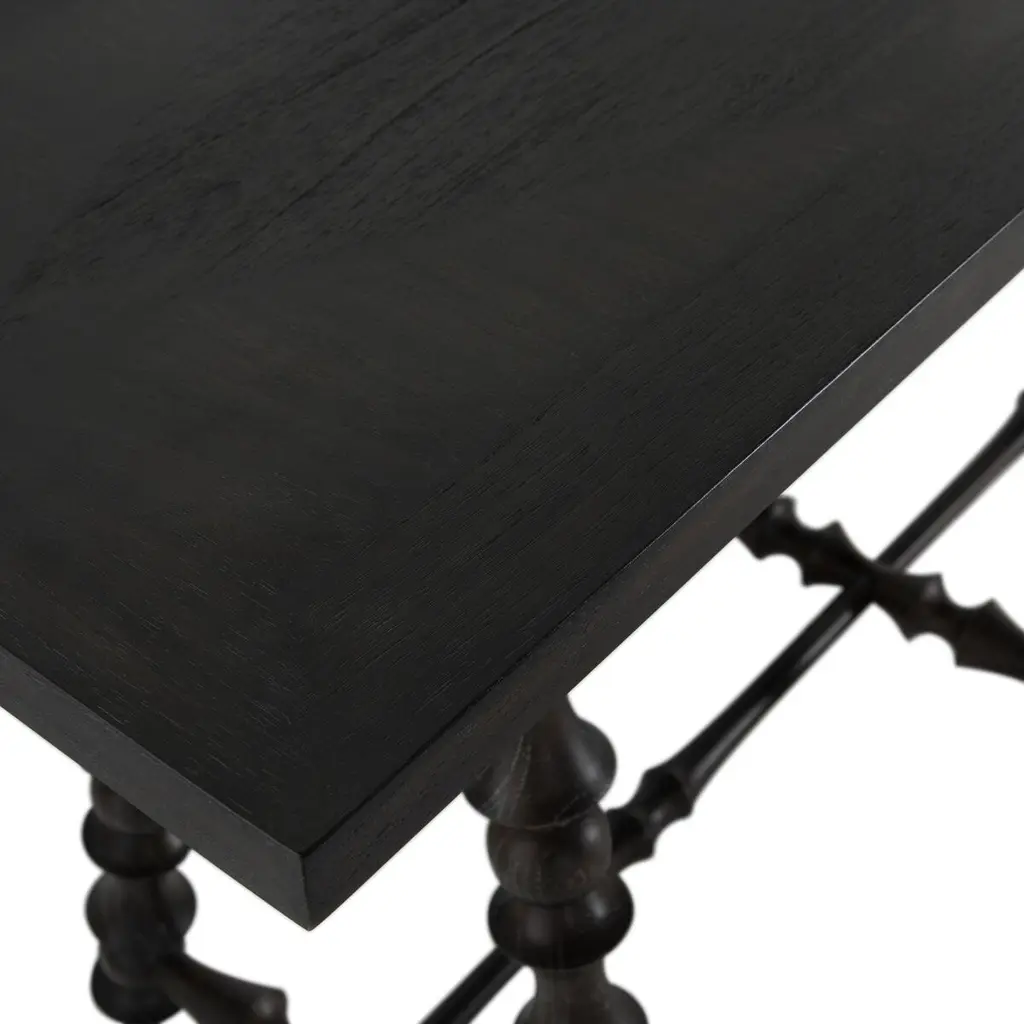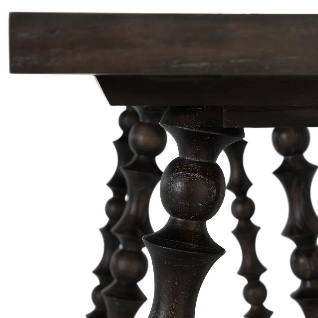 The Kirkwood Console Table is a modern interpretation of the Jacobean antique spindle design, featuring intricately turned legs that add a touch of classic elegance to any space. This console table is made from high-quality Mindi wood and features an angled veneer pattern on the tabletop, giving it a contemporary edge. Whether placed in an entryway, living room, or dining area, the Kirkwood Console Table offers a stylish and timeless addition to your decor, blending old-world charm with modern craftsmanship.