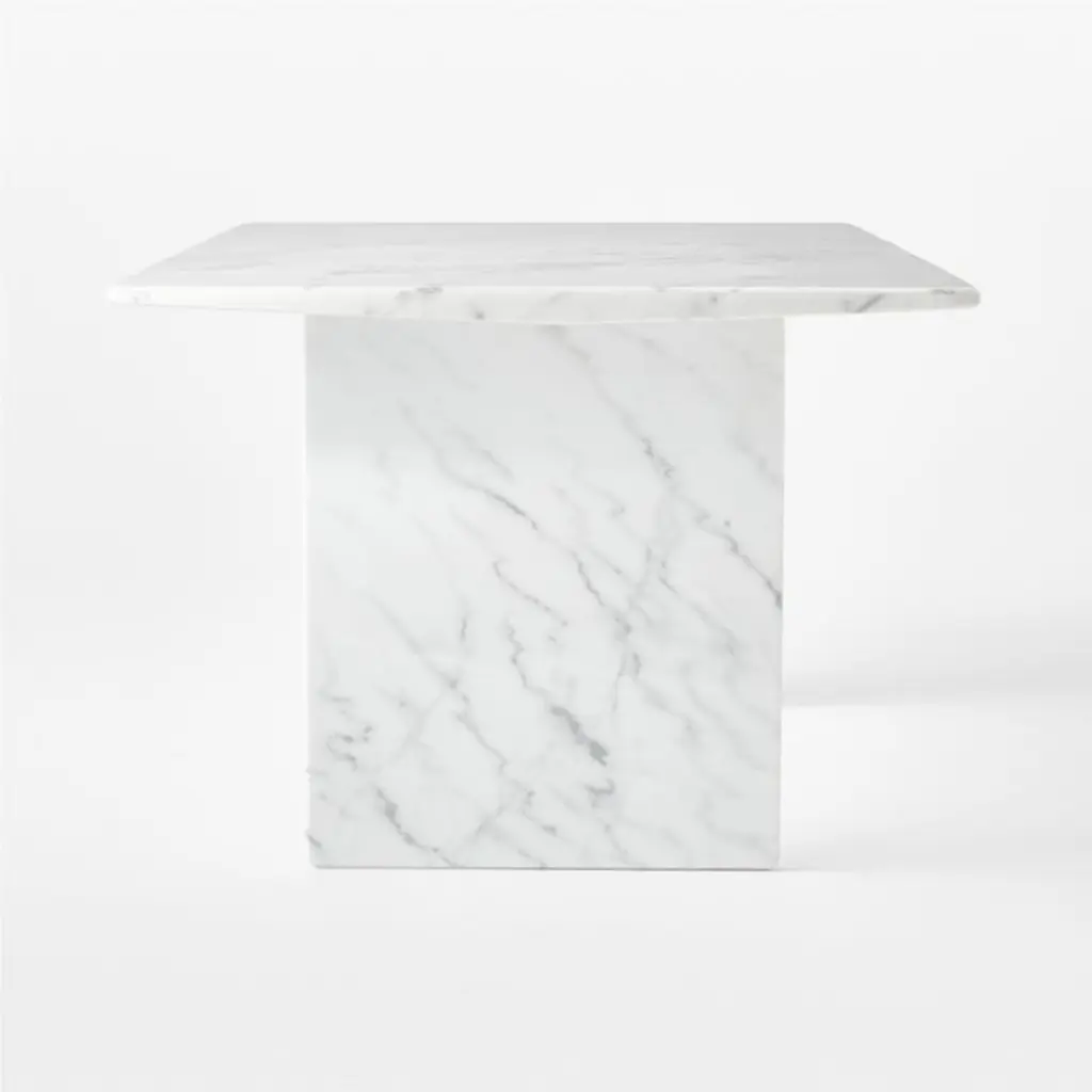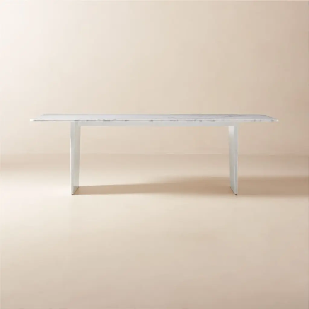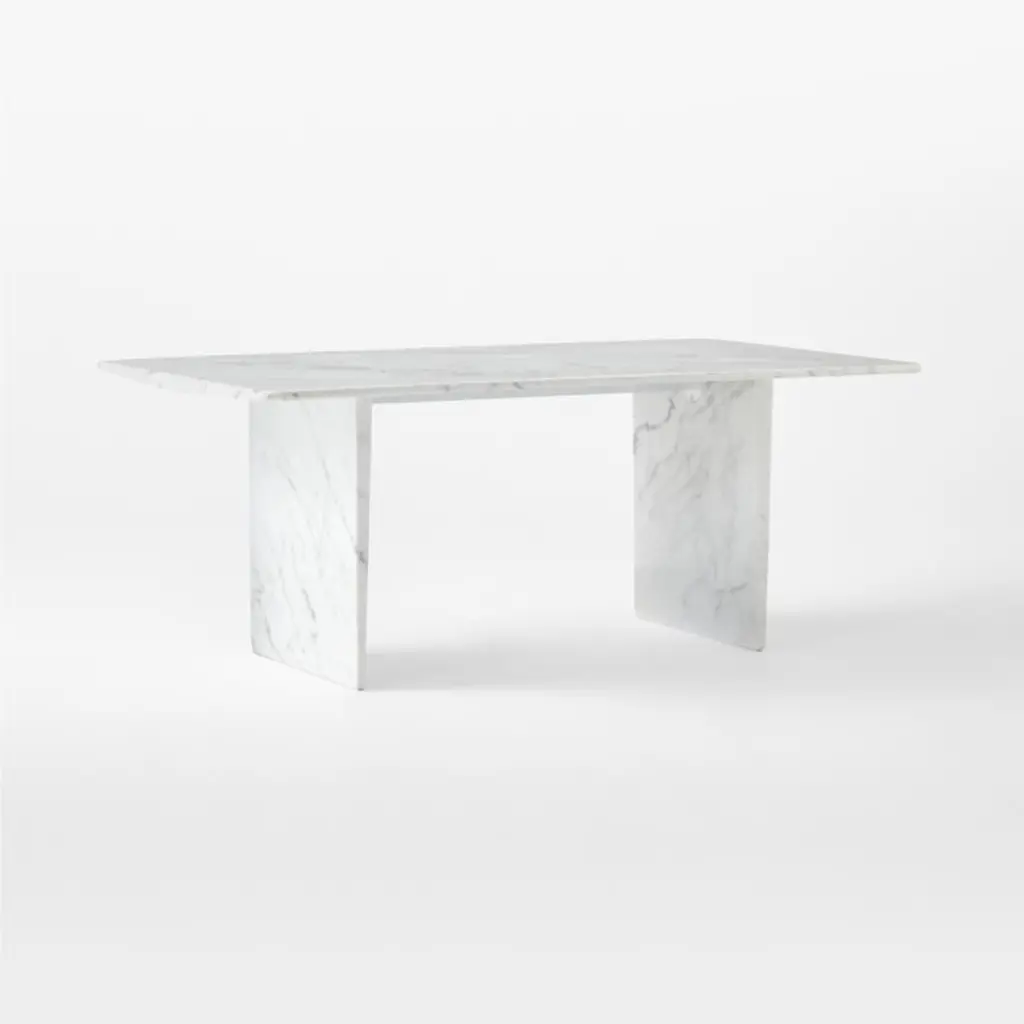 The Kishi dining table by award-winning Nigerian designer Nifemi Marcus-Bello showcases the beauty of Italian Carrara Venato marble. "The name Kishi translates to 'unshakable' or 'unbreakable,' which speaks to the durability and strength of the table," explains the designer. The straightforward silhouette and bullnose edges keep all eyes on the dramatic expanse of smoky grey veining. Tapered legs seem to defy gravity, balancing the thin marble top. "The table is designed to be passed down for generations, hence its approach and simplicity," says Marcus-Bello. CB2 exclusive.