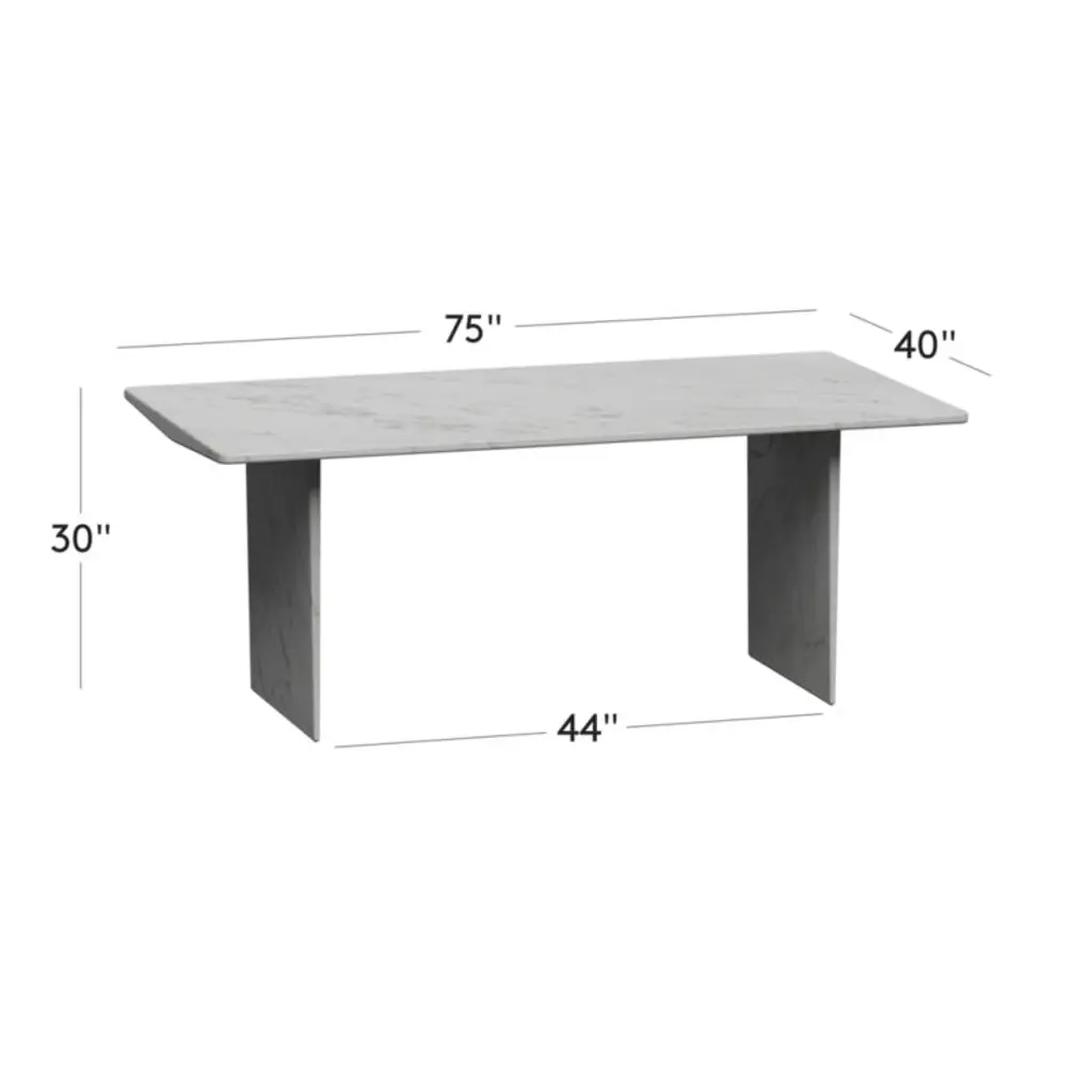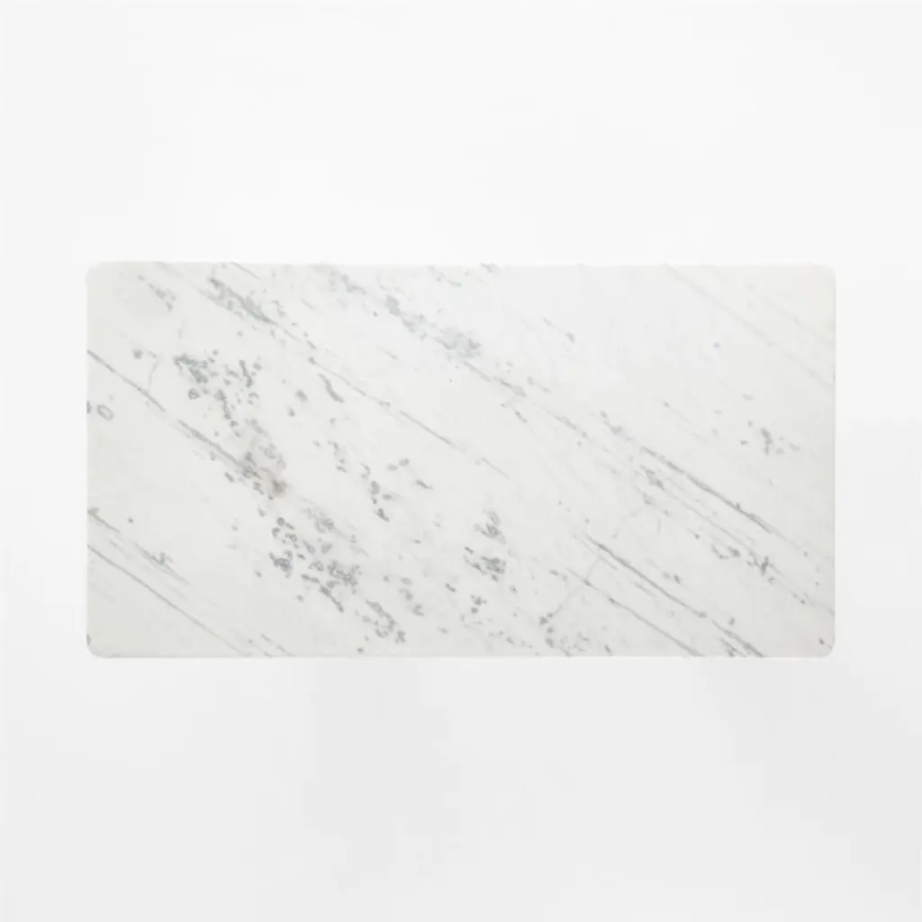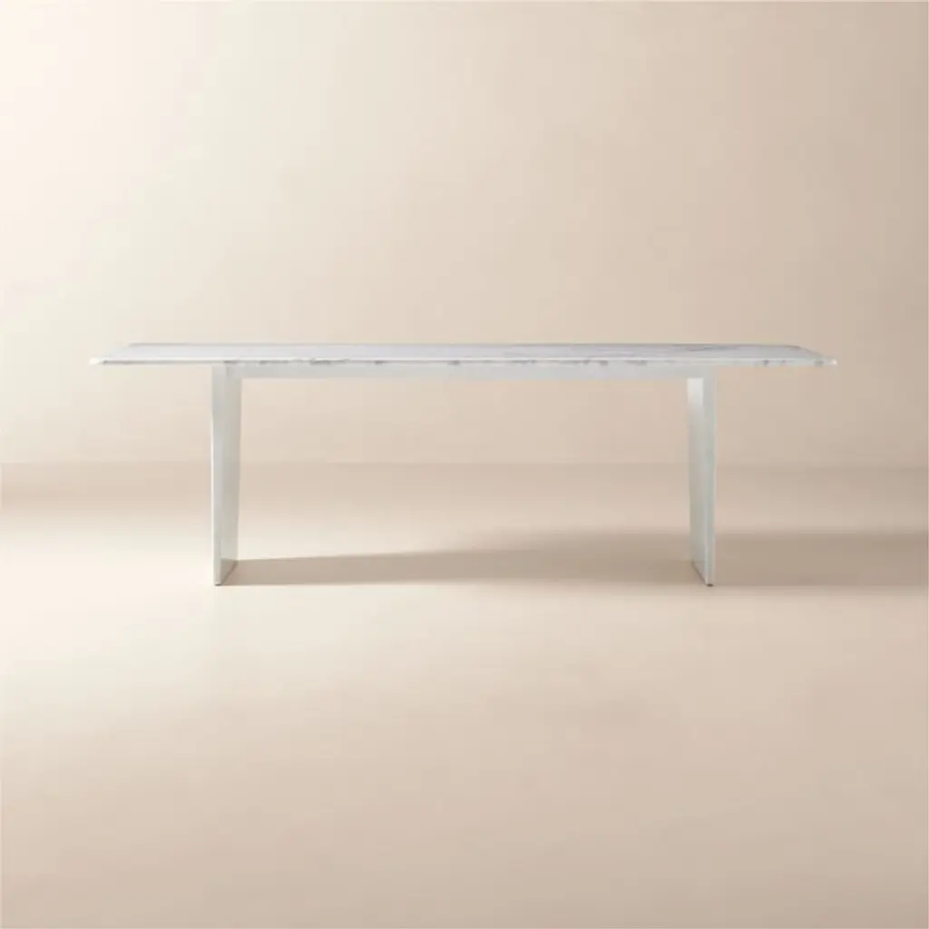 The Kishi dining table by award-winning Nigerian designer Nifemi Marcus-Bello showcases the beauty of Italian Carrara Venato marble. "The name Kishi translates to 'unshakable' or 'unbreakable,' which speaks to the durability and strength of the table," explains the designer. The straightforward silhouette and bullnose edges keep all eyes on the dramatic expanse of smoky grey veining. Tapered legs seem to defy gravity, balancing the thin marble top. "The table is designed to be passed down for generations, hence its approach and simplicity," says Marcus-Bello. CB2 exclusive.