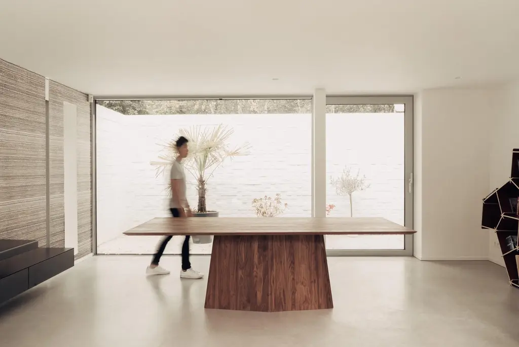 About the tableAdam. A table in 100% solid walnut. Finished in natural oil or Matt varnished. The table is also available in oak in various stains and finishes. Designed by Thien VO. Made with love. A sculpture dedicated to everyday activities. An object capable of adding intensity to the domestic setting.About Thien VOVO is the Belgian designer’s name and the hallmark of Vo Thien. Born in 1989 in Belgium, he has been always passionate about design and architecture. Graduated in interior design at Saint Luc Liège, he focuses his interests towards furniture design. Vietnamese and Belgian, this dual origin allows him to achieve a quite atypical and personal vision of design: pure lines, visual lightness and simplicity, these are the codes that mainly characterize his projects. Following a number of collaborations with design studios, in particular at ORA-ÏTO in Paris, the designer creates his own studio where he starts to develop innovative daily objects and furniture.Handmade in The Netherlands, since 1971