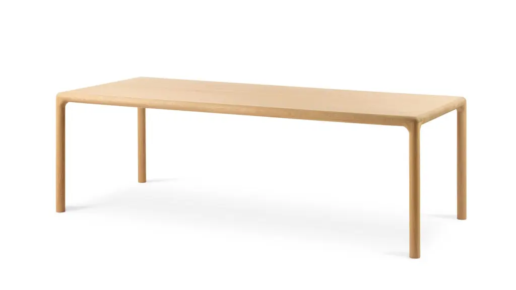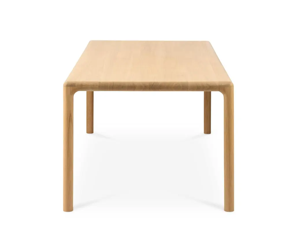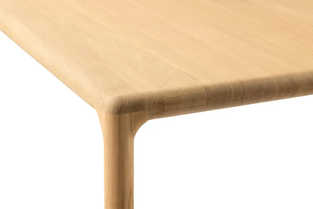 This 100% solid oak table is rectangular but not really. It is very beautifully rounded in an organic way. The top and legs are finished with a beautiful, soft radius. The edge invites you to grab it, so that you have contact with the solid wood and nature every day!The table is available in numerous sizes and is suitable for placing 4, 6, 8 or 10 chairs, depending on the size and chair chosen. Thanks to the limited size of the legs you can easily add an extra chair between the legs. It is a timeless masterpiece, especially in this oak nature white mat varnished finish but also other colors are deliverable. Also the solid wood can be brushed if desired for having a more open grain.Work with quality, live with quality!