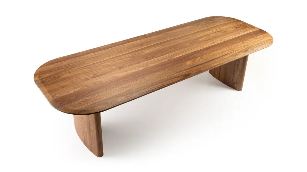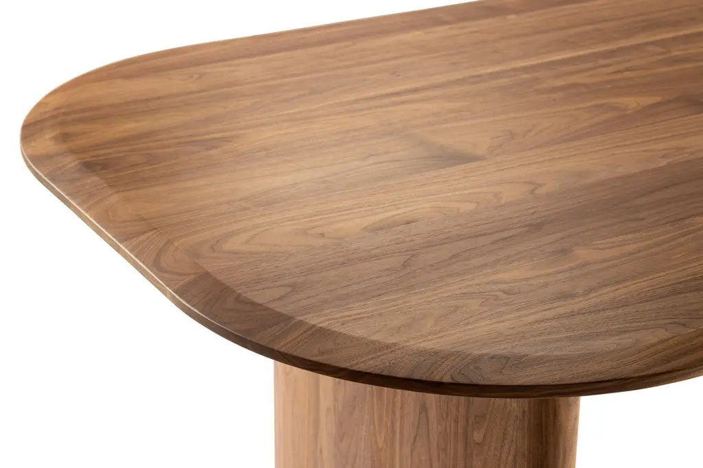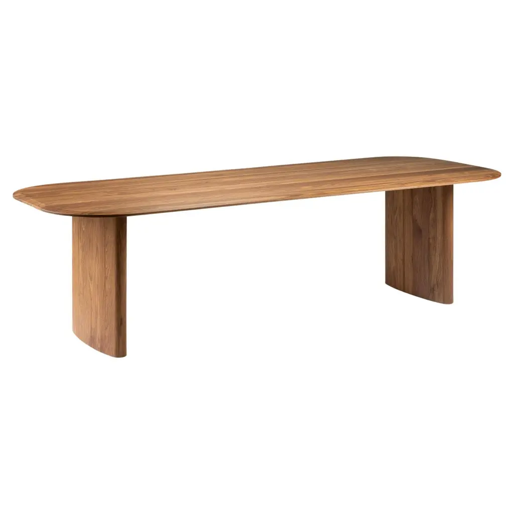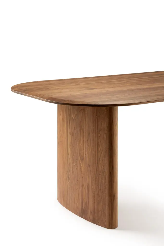 Madeleine Solid Walnut TableElevate Your Space with Timeless Elegance• Product OverviewThe 'Madeleine' Solid Walnut Table is the epitome of modern sophistication, combining sleek design with the warmth and richness of solid walnut wood. Available in either an oiled or matte varnished finish, this table is both a functional centerpiece and a work of art. The Madeleine Solid Walnut Table is designed to be the focal point of any dining area. The table's clean lines and minimalist design make it versatile enough to complement both contemporary and traditional interiors. Unique oval legs offer a distinctive look from every angle, adding to the table's dynamic presence and making the table a conversation piece.Despite its slim appearance, the tabletop is crafted from thick, solid walnut, ensuring that it can withstand the rigors of daily use while maintaining its elegant profile. Whether you opt for the warm, natural look of an oiled finish or the subtle sophistication of a matte varnish, the Madeleine table exudes quality and craftsmanship.• MaterialCrafted from premium solid walnut, known for its durability and stunning grain patterns.• Finish OptionsChoose between a natural oiled finish or a refined matte varnish, allowing you to customize the table to your aesthetic preference.• SizesStandard dimensions are 180x105cm, 200x105cm, 220x105cm, 240x105cm, 260x105cm, 280x105cm, 300x105cm, 320x105cm, 340x105cm and 360x105cm but customization is available.• Benefits- Customizable Dimensions: Tailor the size of your table to fit perfectly in your space.- Sophisticated Aesthetic: The combination of solid walnut and a floating design adds a touch of luxury to any room.- Durable and Long-Lasting: Made from high-quality materials and finishes that ensure longevity and easy maintenance.• Specifications- Material: Solid Walnut- Finish: Oiled or Matte Varnished- Dimensions: Standard: 280x105 cm; Customizable.• Care Instructions- Cleaning: Wipe with a soft, damp cloth. Avoid using harsh chemicals. Dry immediately with a soft dry cloth.- Maintenance: Regularly oil the table if you choose the oiled finish; No maintenance required in case of the mat varnished finish.Handmade in the Netherlands since 1971Work with quality, live with quality!