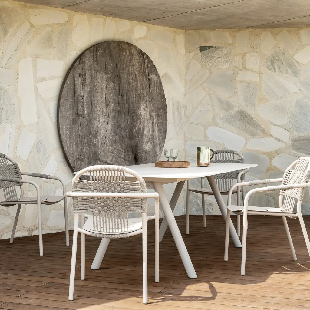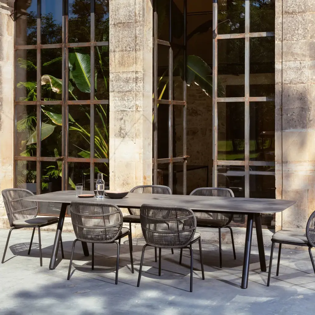 Elevate your outdoor dining experience with the Kodo Outdoor Rectangular Dining Table from Vincent Sheppard. Crafted with a sleek ceramic table top and slim aluminum legs, this garden table exudes a natural, luxurious aesthetic. Great for casual meals or elevated dinner parties, enjoy the perfect blend of style and functionality with this elegant addition to your outdoor space. Highlights