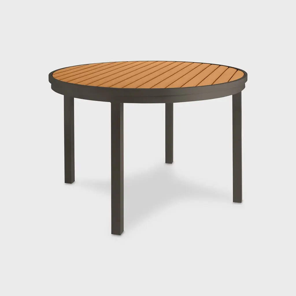 The Koko II Dining Table Round 120 brings a streamlined aesthetic and visual sense of lightness to classic slat styling.