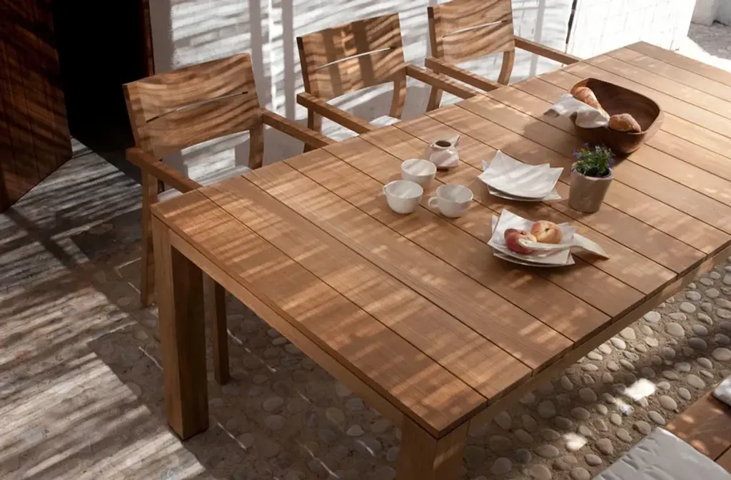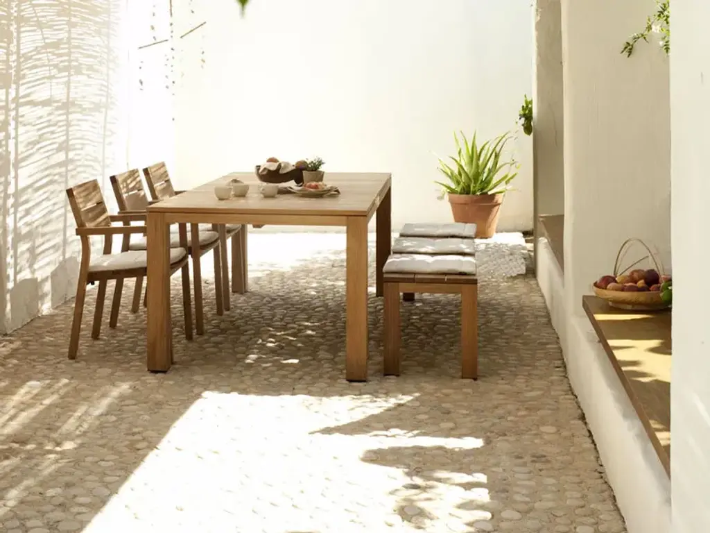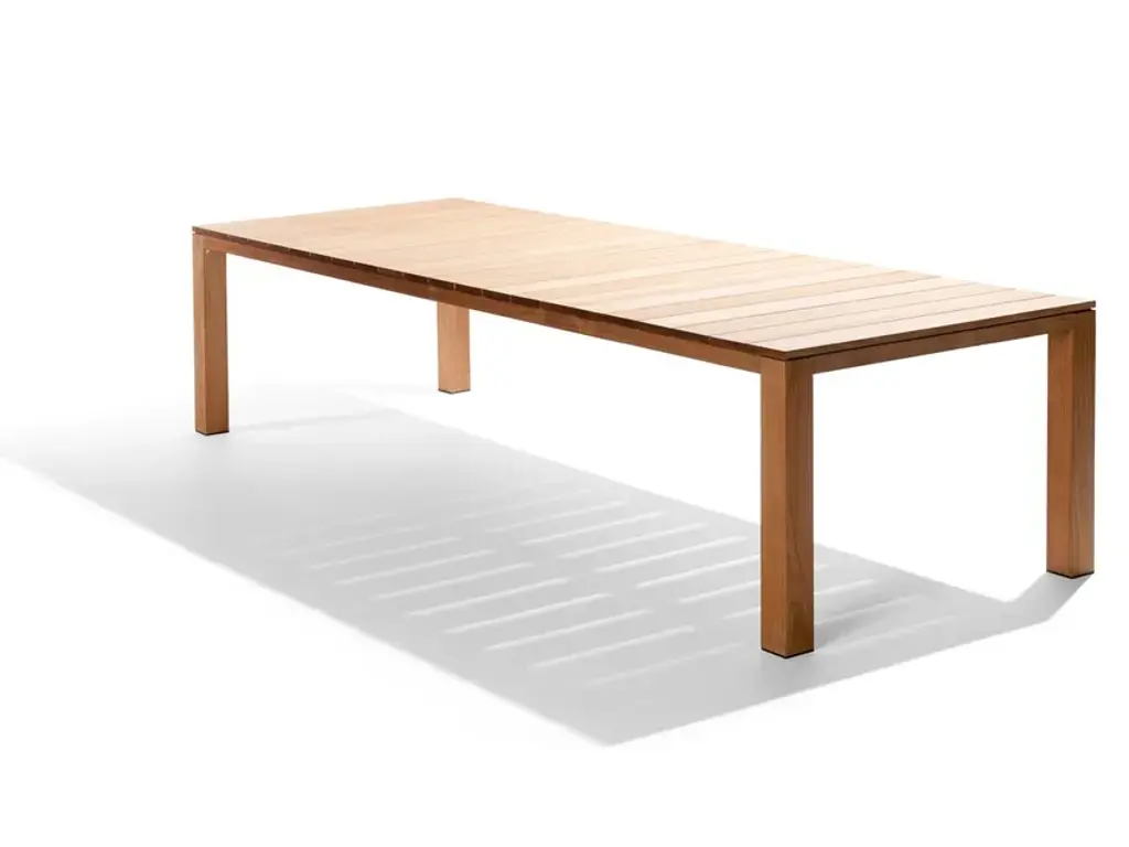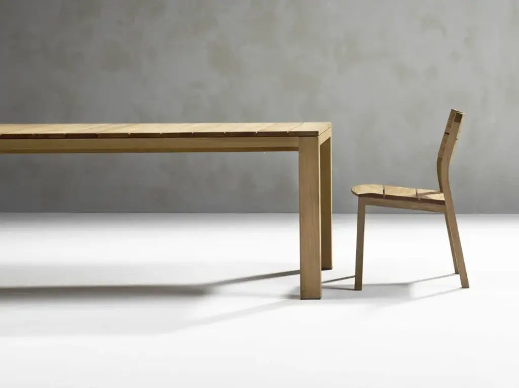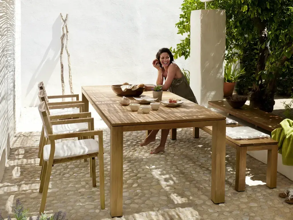 The combination of the broad slats and the pure but powerful design, reinvents teak in a modern, robust way. The Kos table is available in various sizes and complements different chairs. Tribù uses only the very best Javanese plantation wood for its teak outdoor furniture. Its quality is locally controlled by subsidiary Tribù Asia.The Kos outdoor table is available in different dimensions and matches different chairs.Kos: Basic chic with an excellent, well-studied seating comfort is the best way to describe the Kos outdoor collection. The combination of the broad slats and the pure but powerful design, reinvents teak in a modern, robust way. Tribù uses only the very best Javanese plantation wood for its teak outdoor furniture. Its quality is locally controlled by a subsidiary under european management to garantuee european standards.