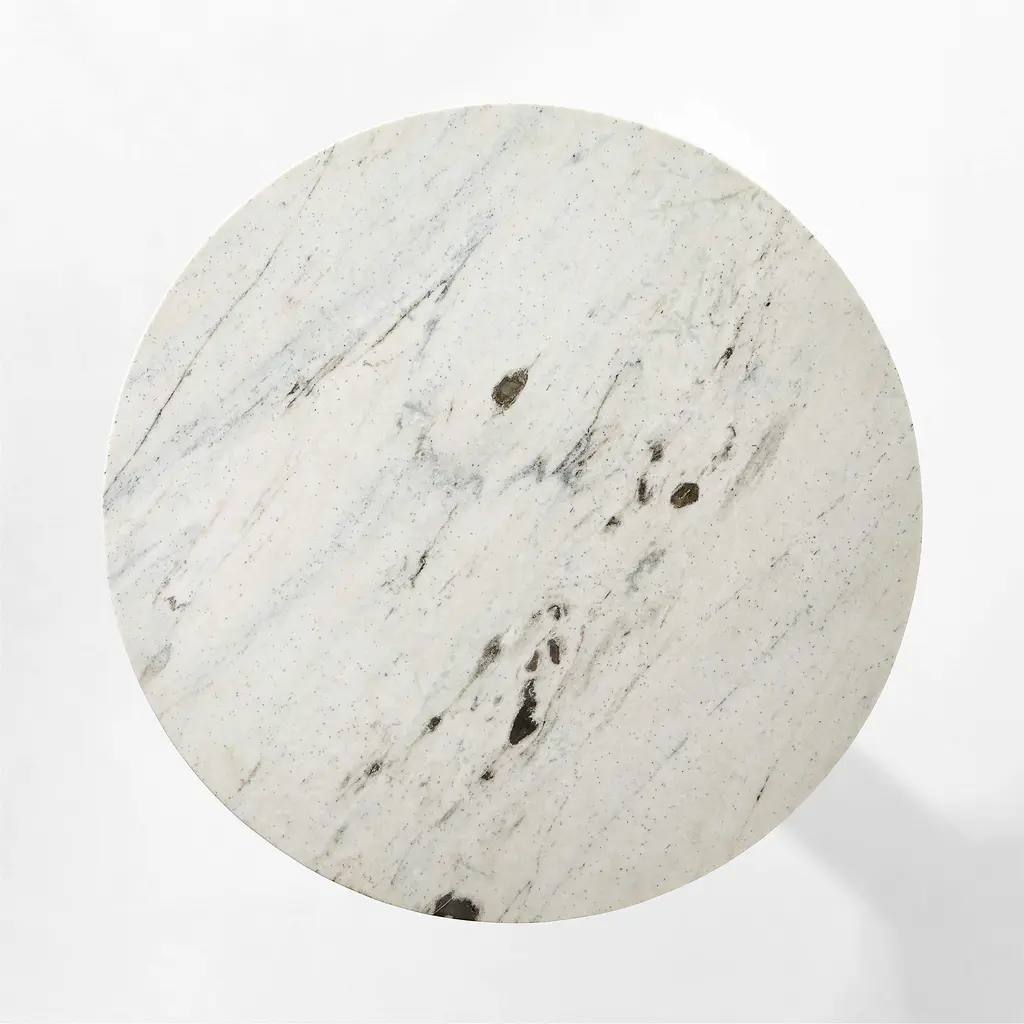 Tiered pedestal table by Mermelada Estudio fuses the classicism of honed River White marble with a daringly modern silhouette. The smooth, round tabletop accommodates up to four guests, elevating everyday meals from daybreak to late nights. Throughout this solid marble piece, grey veining creates the unique activity characteristic of natural stone; no two tables will be alike. CB2 exclusive.
