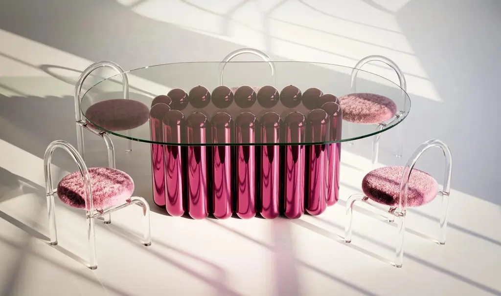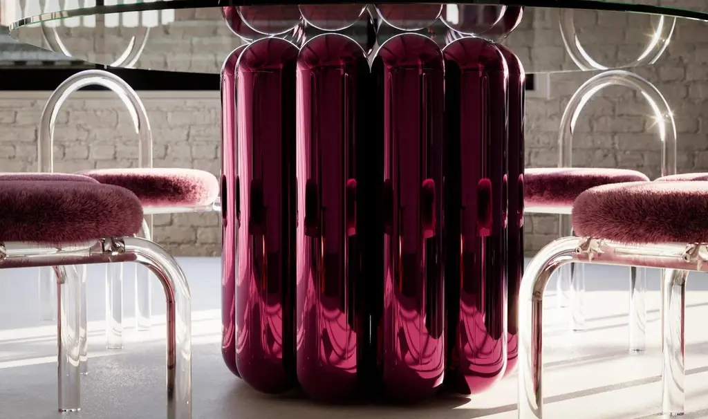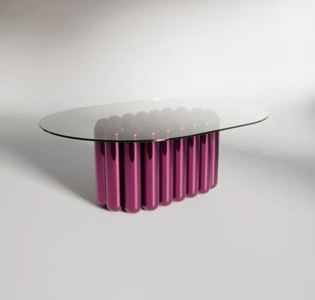 Kupoli Dining Table 18 by Cameron Design HouseDimensions: D 150 x W 210 x H 75 cm.Materials: Steel, glass.Available in other dimensions.Available in paint or pigmented chrome finishes. Please contact us.The Kupoli Dining Table is the centrepiece of the Kupoli Collection, Cameron Design House’s debut collection of statement sculptural furniture. Designed to captivate, the Kupoli Collection seamlessly merges artistry and craftsmanship with functionality. Each piece features a mesmerising body of domed steel tubes, finished with a glass top.All our lamps can be wired according to each country. If sold to the USA it will be wired for the USA for instance.Cameron Design House is an award-winning British studio specializing in bespoke lighting and furniture. Founded by Ian Cameron in 2014, the London-based brand is renowned for its contemporary statement designs and refined craftsmanship. Each piece is designed in our London studio and handcrafted in our Hertfordshire workshop."In our hands, we are metalworkers; with our minds, we are designers; and with our hearts, we are artists."— Ian Cameron (Founder)Now globally recognized, Cameron Design House’s expansion has been driven by Managing Director Simeon Chilvers. Coming from a background in architecture and design, he brings a wealth of knowledge and expertise that propels the brand’s development forward.Cameron Design House is defined by quality, precision, and a seamless client experience—from design to delivery. Our custom chandeliers and furniture are meticulously engineered and tailored to each client’s specifications, offering bespoke sizing, configurations, and finishes. From our collection to fully bespoke pieces, your vision is brought to life through our expertise.