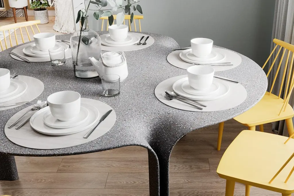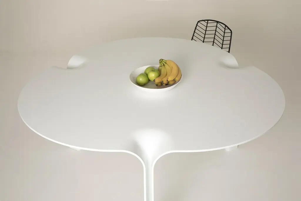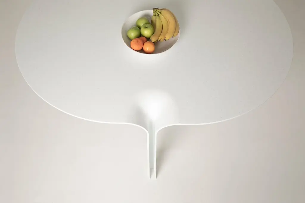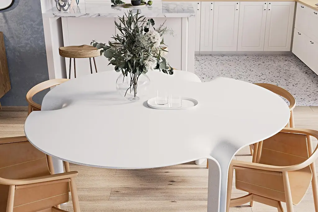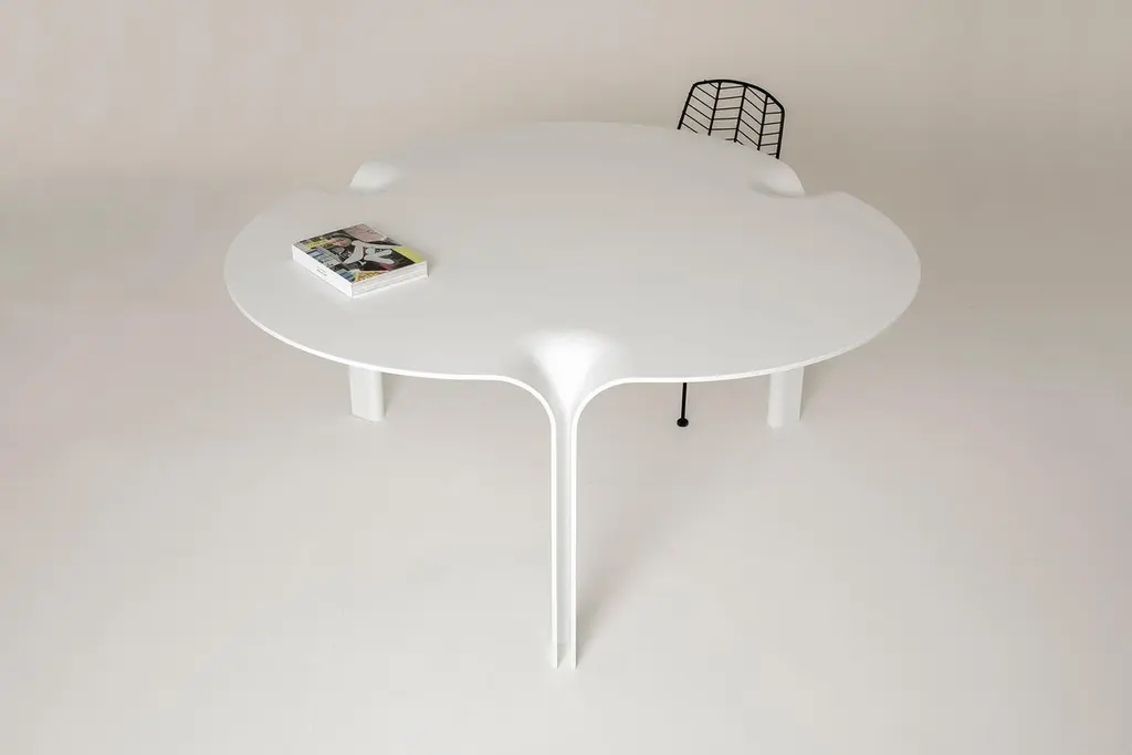 Kuroba dining table by Henka LabLimited editionDimensions: H 75 x D 160 cmMaterials: Krion solid surfaceMaterial and wide range of colours are available upon requestsSeries limited to 100 signed and numbered copies. Inspired by plant nature, Kuroba table emerges and grows through various simple operations by transforming three points of a circle. The purity of it's original geometry is subtly altered through an evolutionary process in order to meet its main needs, both functionality and stability.Material: Krion Solid Surface. It is a material that is warm to the touch and similar to natural stone. It is made of two-thirds natural minerals and a low percentage of high-resistance resins. This composition gives KRION a number of exclusive features: it does not have any pores, it is antibacterial without any type of additive, it is hard-wearing, highly resistant and easy to repair, only requires minimum maintenance and is easy to clean. It is an ecological material, as it can be recycled 100%. Alternative colours are available upon request.Henka: From Japanese ?? “to change into”. Lab: A room or building where experimentation and research take place.HenkaLab is an award winning studio where shape experimentation takes place. Inspired by nature, my work emulates evolutionary processes, subjecting pure geometries to certain tensions, obtaining new living forms that fit a specific use.Each piece produced through this process has been patiently hand-shaped and crafted to the highest standards.Signed and numbered limited pieces.Pablo Vidiella was born in 1984 in Madrid, where he is currently based. Interested in arts, he decided to study Architecture, obtaining the degree in 2013. After that he moved to London, where he started working in a well-known architectural practice, having the opportunity to work in different fields and scales of architecture and design, getting in touch with technical and digital fabrication. Back in Madrid, he decided to train and focus exploring and investigating creation boundaries as a personal challenge until today.