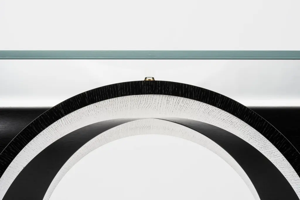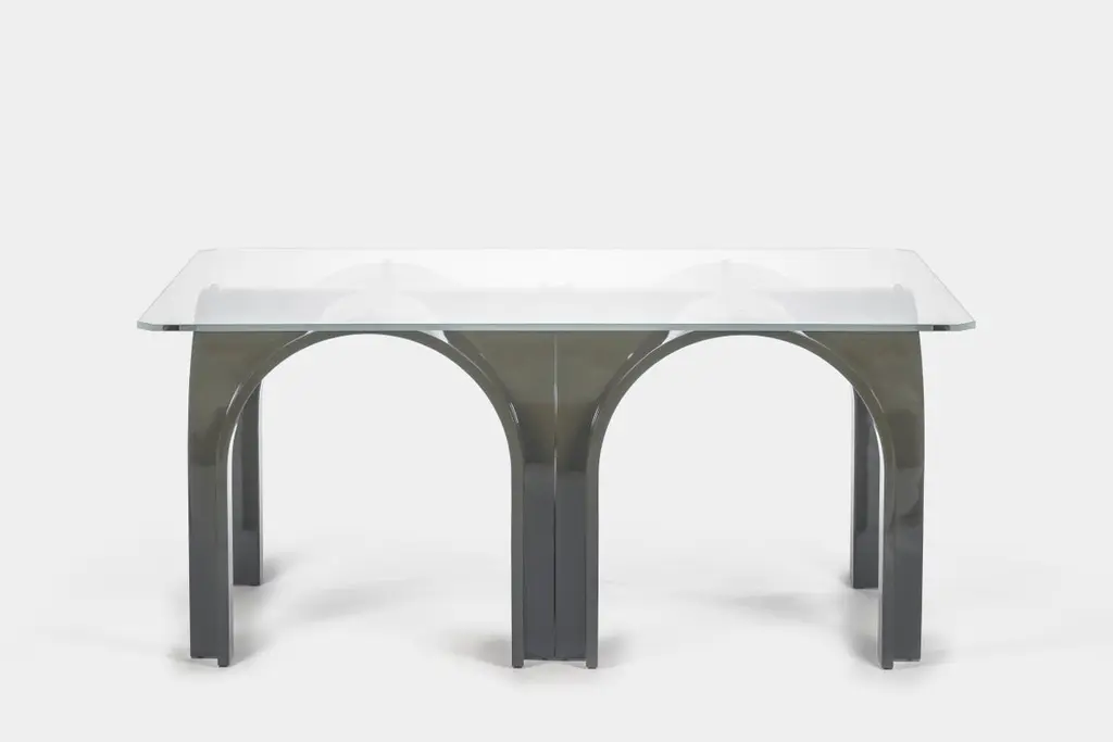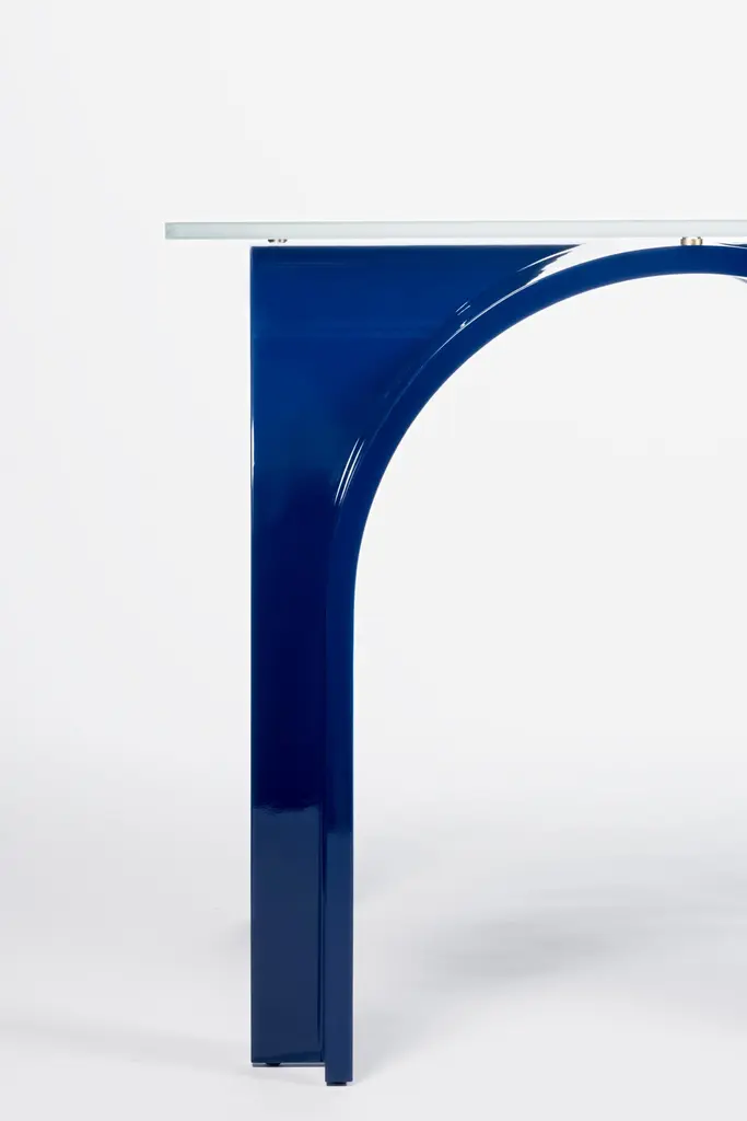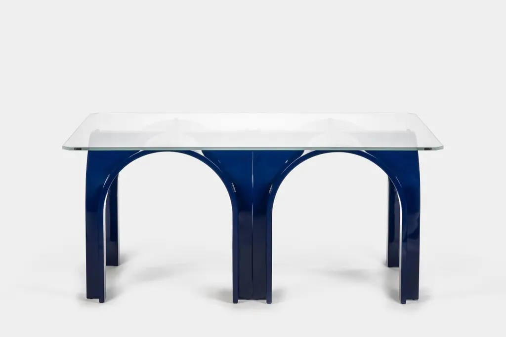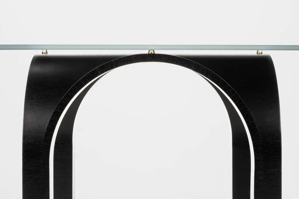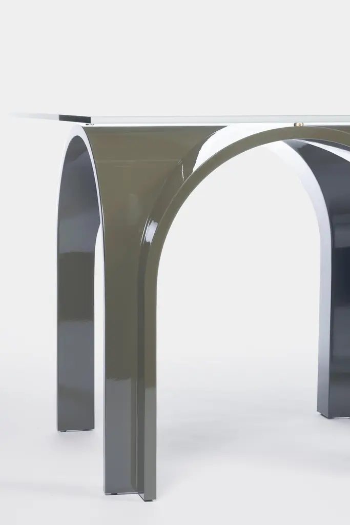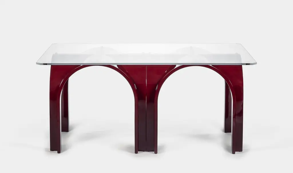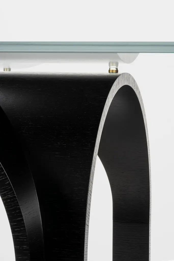 Laguna Dining Table with Lacquered Wood & Clear Glass Top by Antonio De MarcoDimensions: D 109 x W 188 x H 77 cm. Materials: Wood and glass.Available in different material options. Please contact us.LAGUNA is a tribute to the city of Venice, to its fragility and, at the same time, incredible strength. Its geometry resembles the city's porches, with the typical crossing vaults.Antonio de Marco (1983) has been involved in mechanics and carpentry since he was very young; are areas that represent for him a constant stimulus to seek, create and experience new ways of transforming matter.Passionate about how things are done, the elements they make up, to what and to whom they serve; the objects he designs have the ambition not to fade over time, but to sediment in the memory of the one who uses them.He studied at the Politecnico di Milano at the Royal Danish Academy in Copenhagen and holds a master at the Marangoni Institute in Milan. Than works in barcelona for Santa&Cole and in Milan for Isao Hosoe and than Matteo Ragni Studio. In addition to his design activity, he teaches in the Design Methodology master’s program at NABA in Milan and the Scuola Politecnica del Design, as well as in the three-year program at Istituto Marangoni.In his studio he cont inued the research and experimentation within design; a place where to think through his hands.