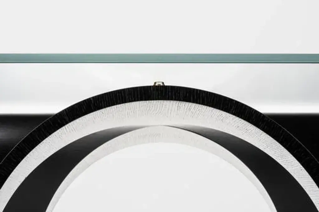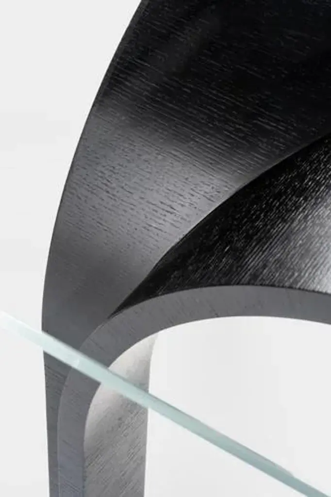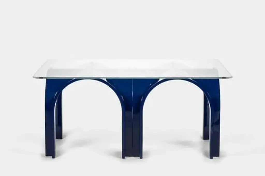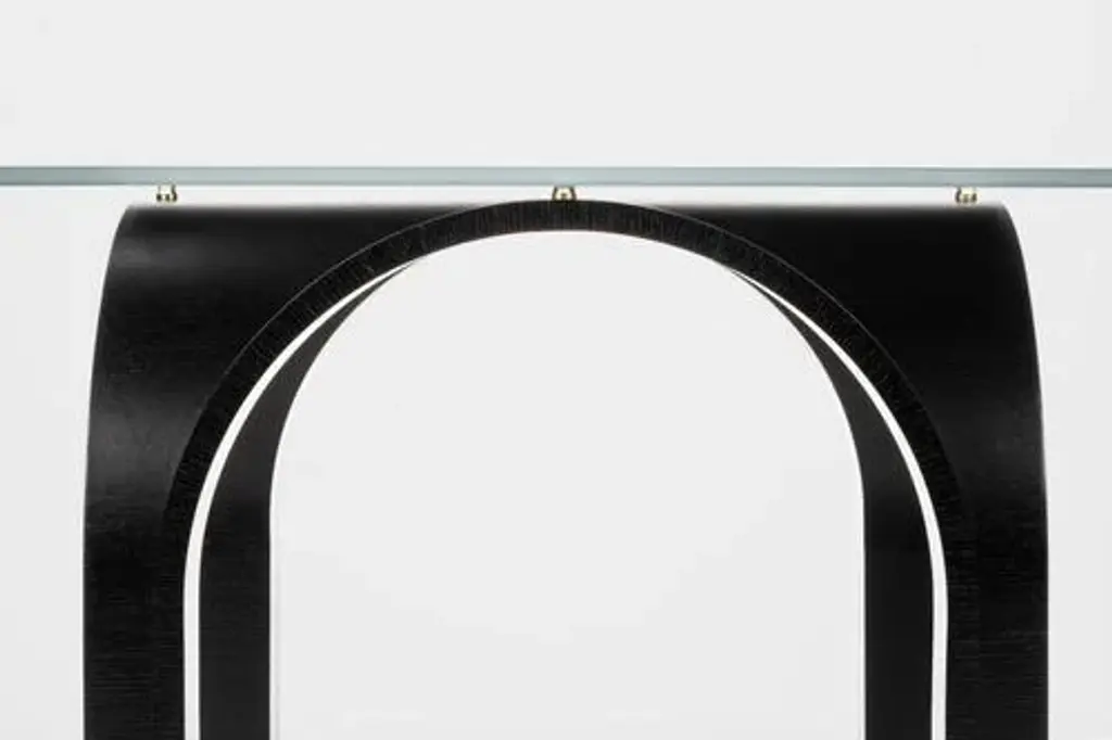 Laguna Dining Table with Lacquered Wood & Clear Glass Top by Antonio De Marco Dimensions: D 109 x W 188 x H 77 cm. Materials: Wood and glass.