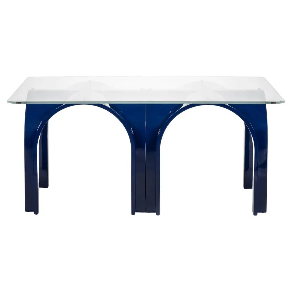 Lacquer Color Wood Dining Table With Rectangular Glass Top By Antonio De Marco