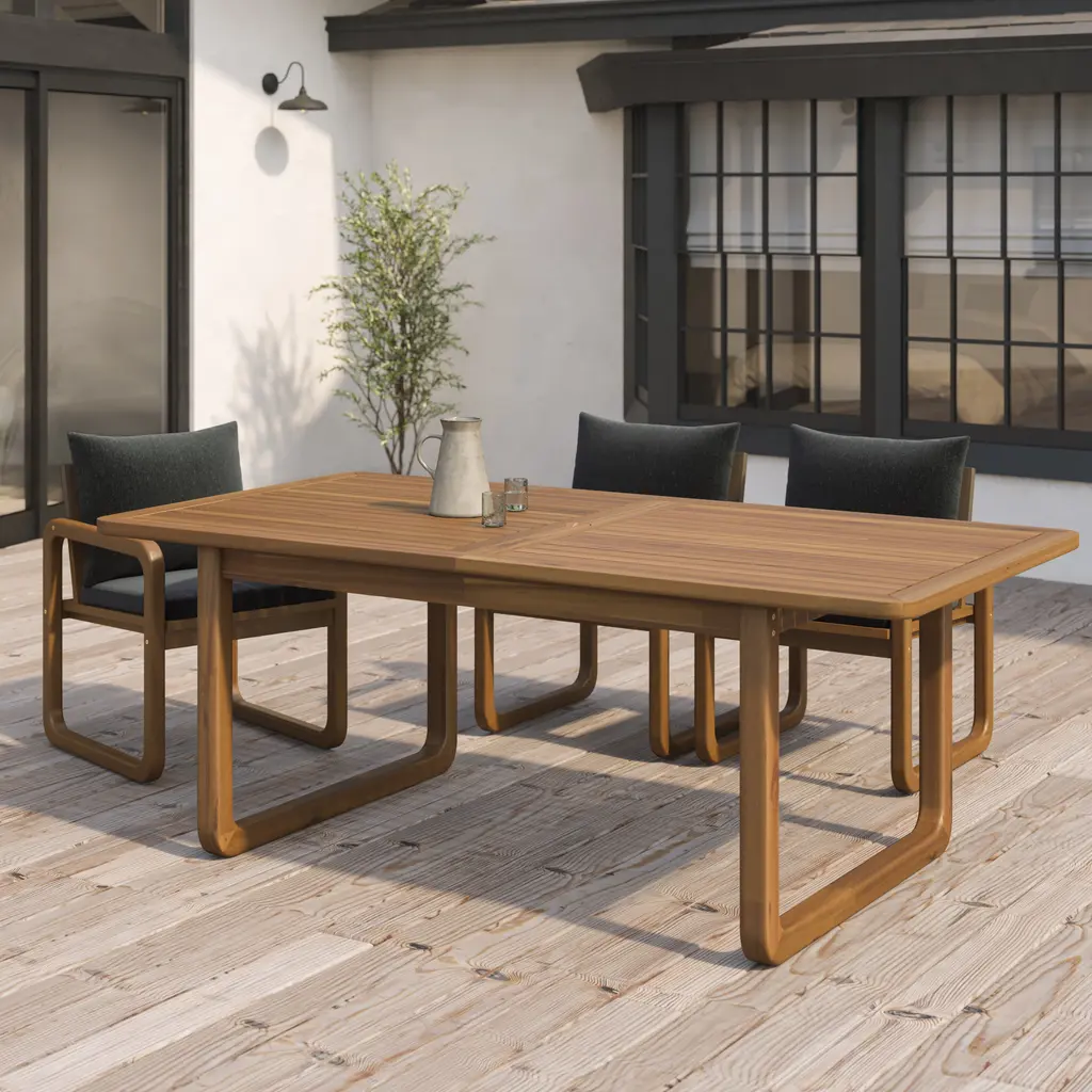 Sunstruck? No—it's just the Laholm Dining Table's slim, open profile and curved physique. Known for its naturally water-resistant properties, the Laholm features an all-solid acacia construction. But maybe pop one of our outdoor covers into your cart, too, for you guys in the it-rains-all-the-time climates (we're looking at you, Pacific Northwest).