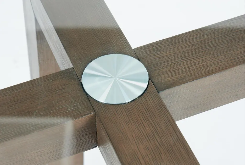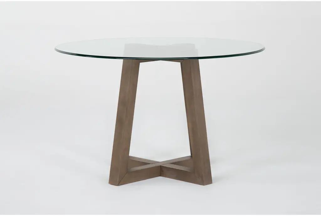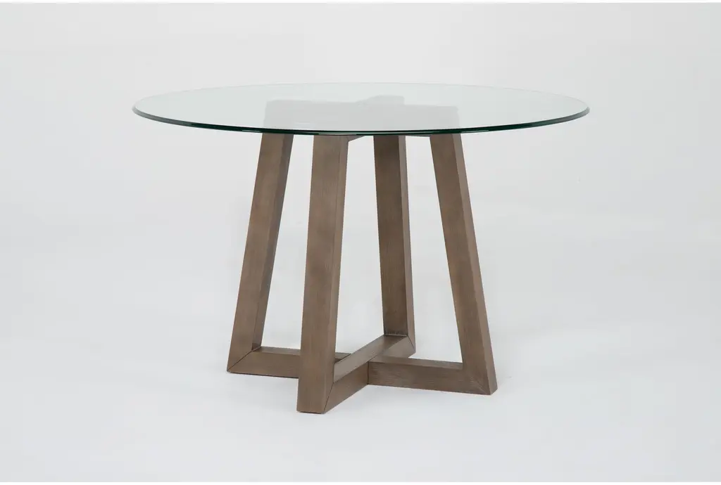 Lakeland Natural Brown Wood Round 48" Pedestal Glass Dining Table